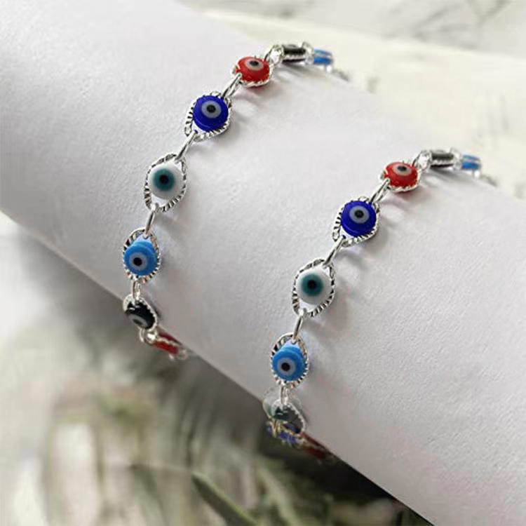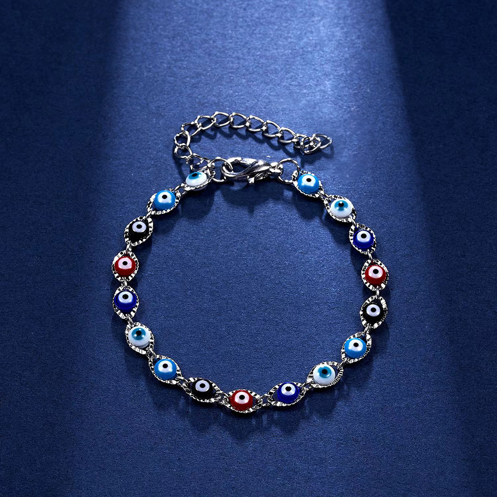 European and American Cross-border Jewelry Ins Style Niche Design Sense Simple Mixed Color Devil's Eye Stainless Steel Bracelet
