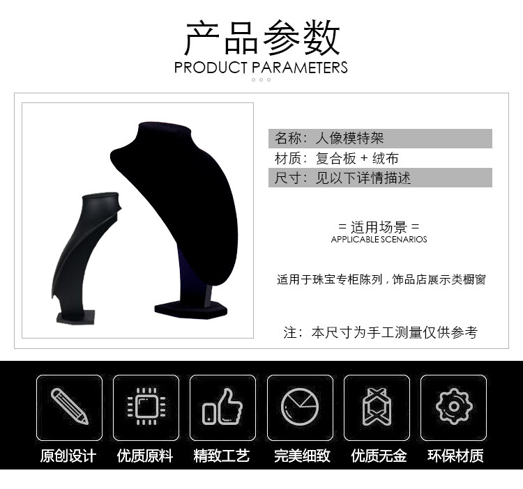Necklace Display Rack Black Velvet Figure Neck Jewelry Rack Jewelry Storage Household Jewelry Stall Shop Model Shelf