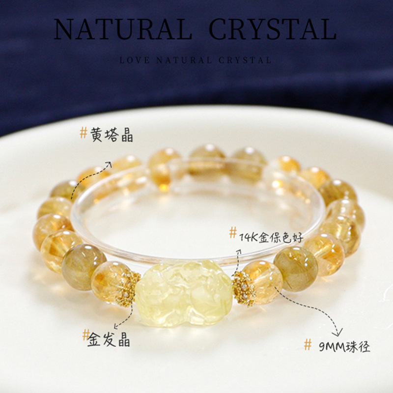 Material size: Yellow pagoda crystal blonde crystal 8-9mm pixiu