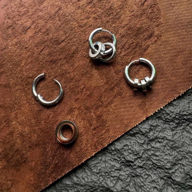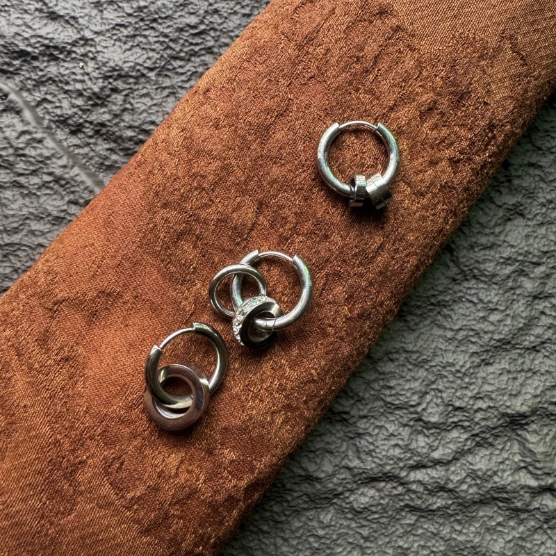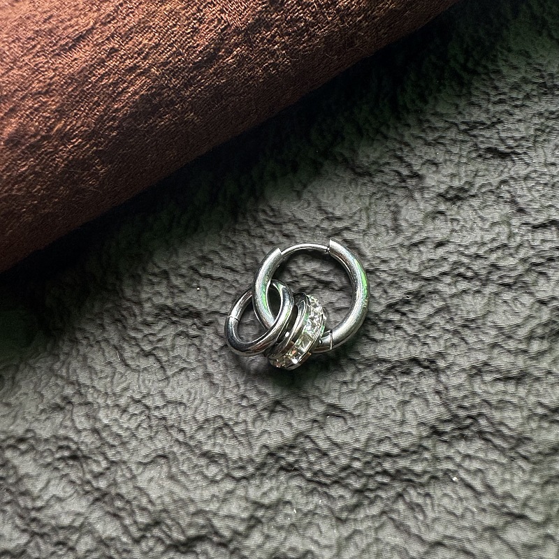 Gage titanium steel earrings stainless steel ear clip circle geometric simple all-match diamond earrings for men and women hip-hop ins