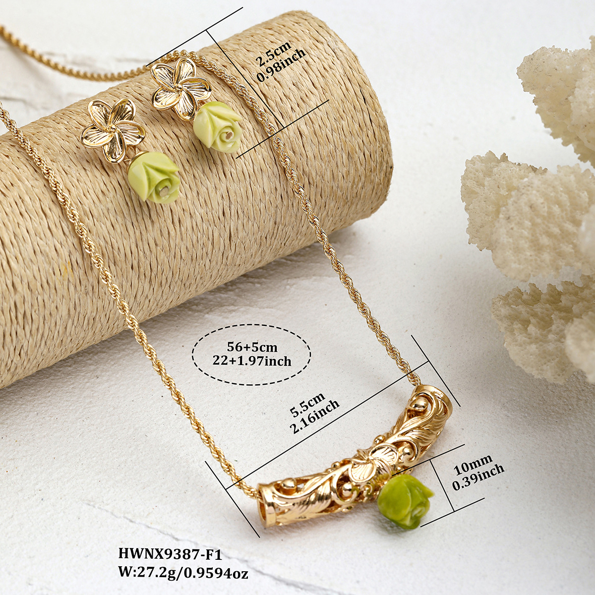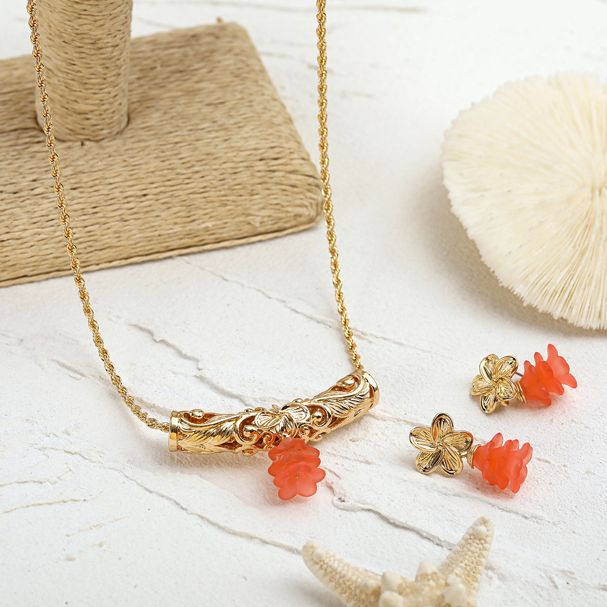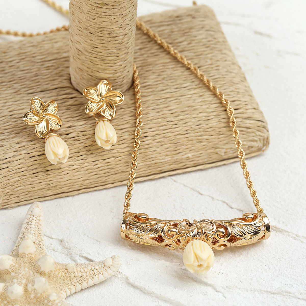 Hawaiian Island Style Flower Necklace Earrings suit Egg Pattern Hollow Elbow Fashion Jewelry