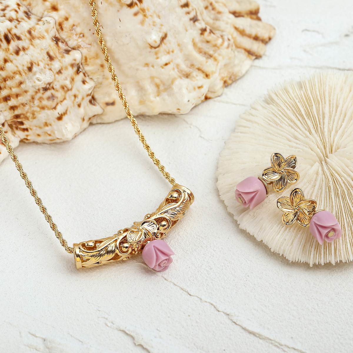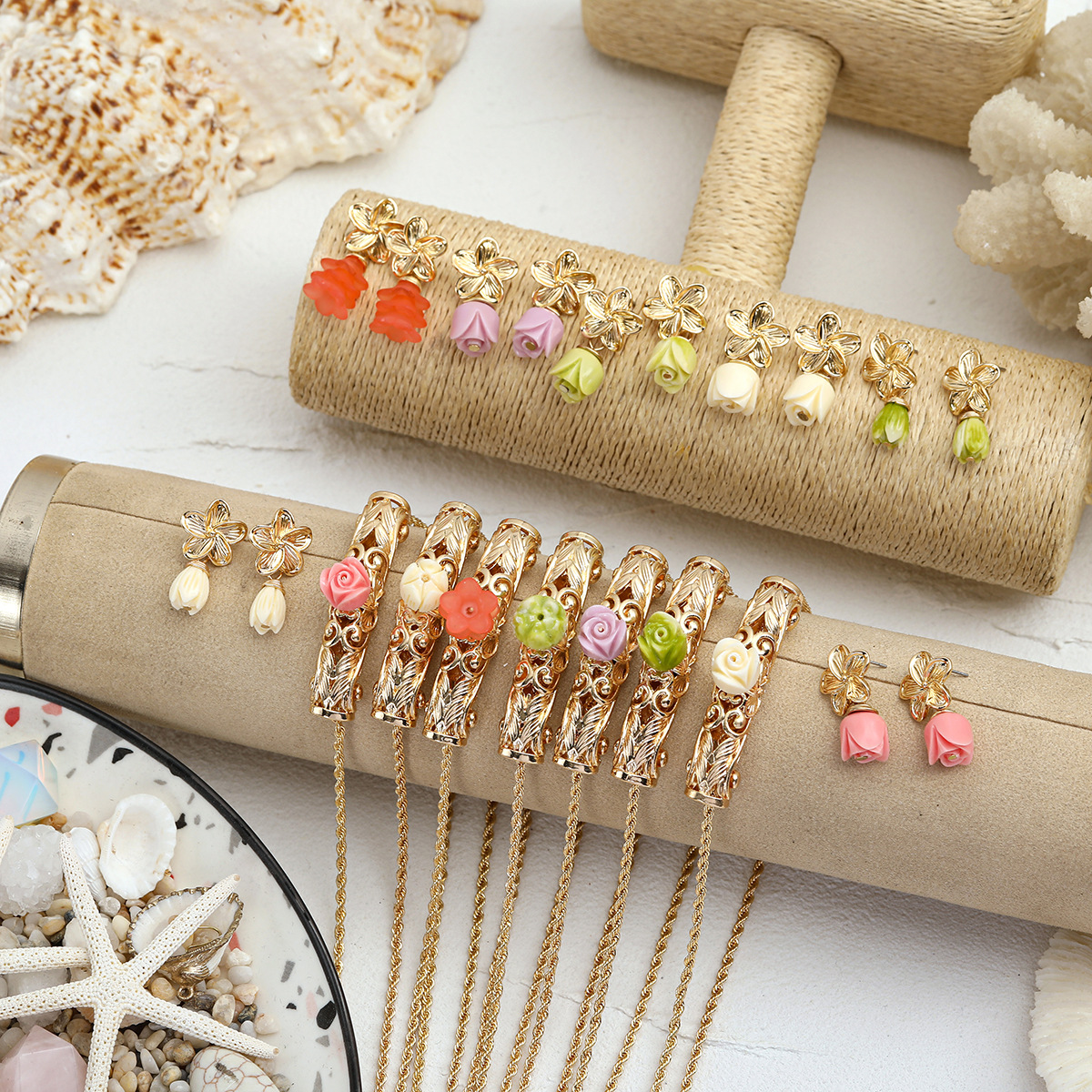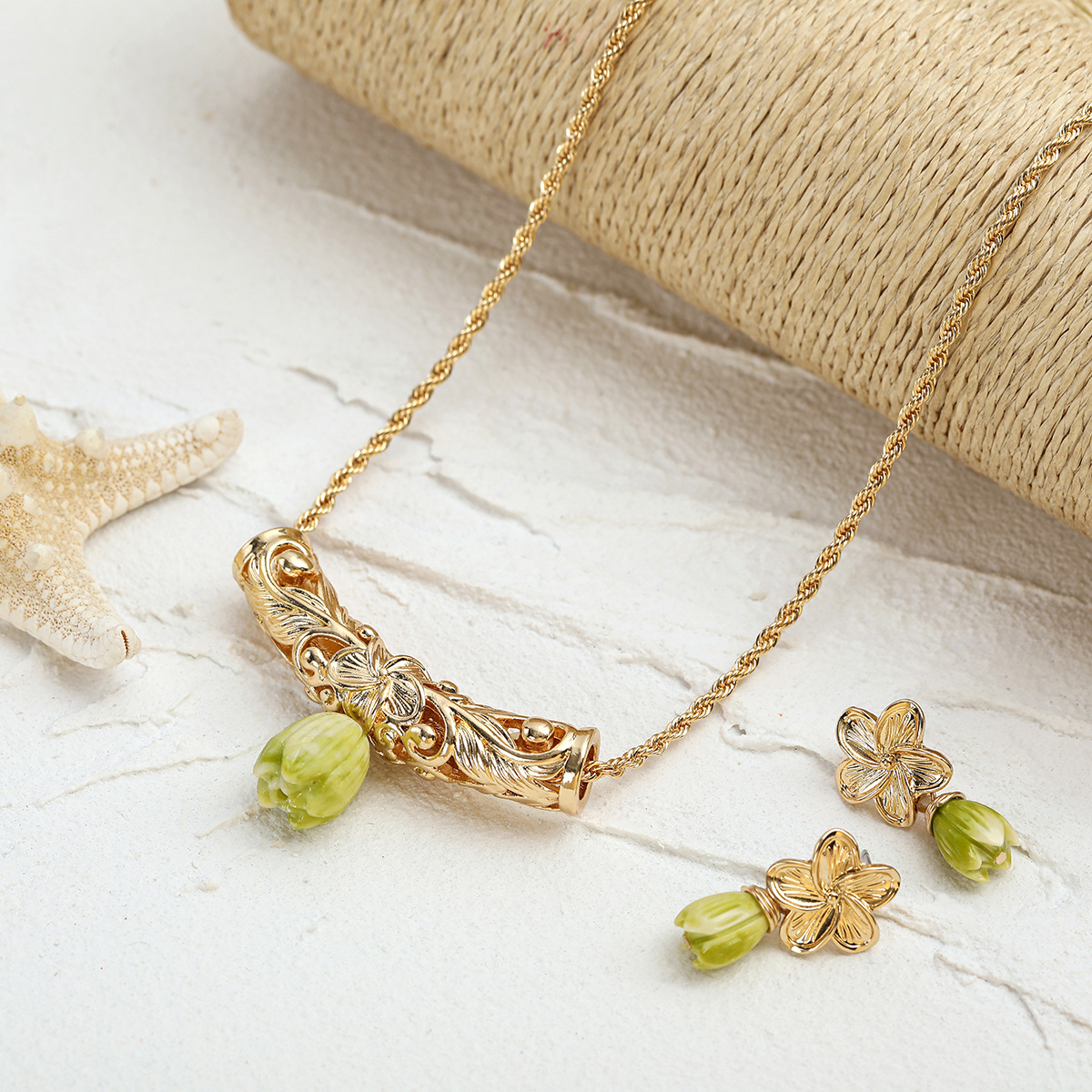 Hawaiian Island Style Flower Necklace Earrings suit Egg Pattern Hollow Elbow Fashion Jewelry