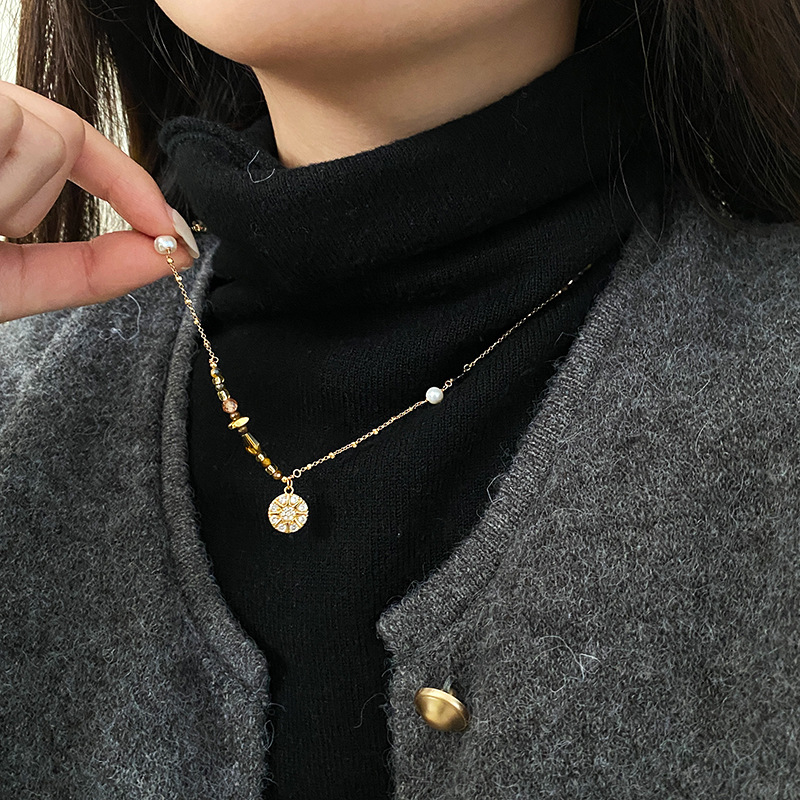 Material: Natural pearl+tiger eye stone+zircon