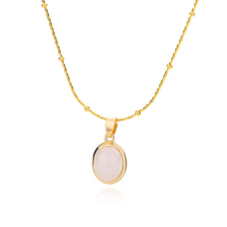 Cross-border Hot-selling Oval Cat's Eye Pendant Titanium Steel Necklace Niche Design Light Luxury Clavicle Chain Advanced Sense Wholesale