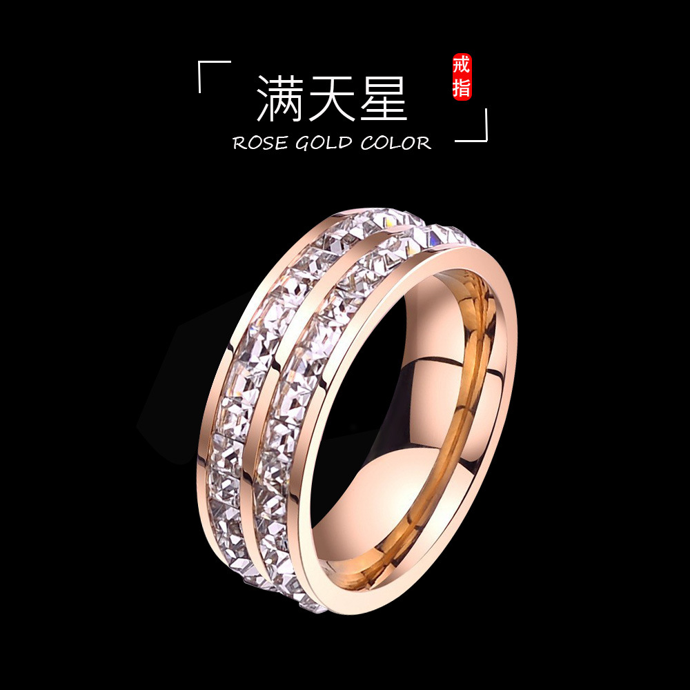 Color: Titanium steel star double row square diamond ring-rose gold