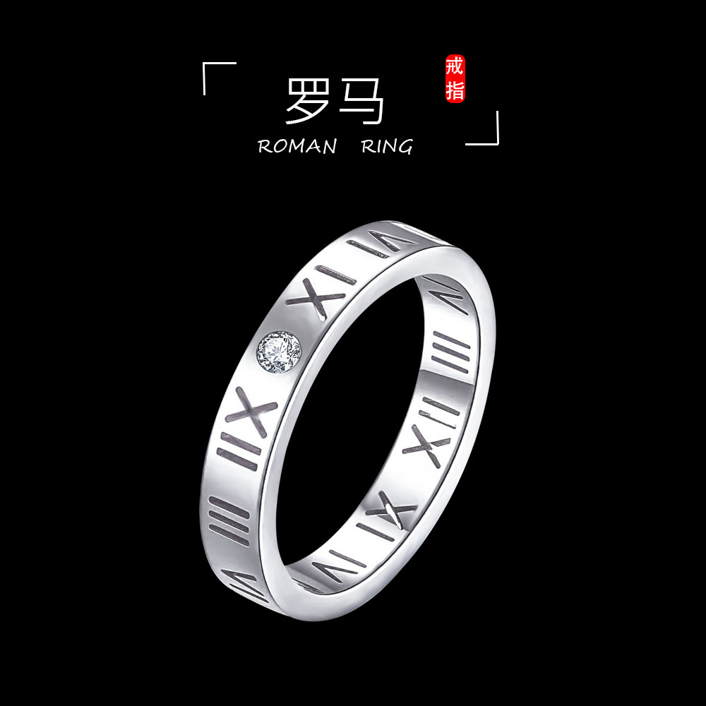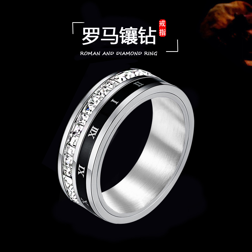 Color: Titanium steel Roman diamond room black ring