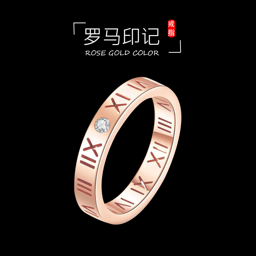 Color: Titanium Steel Roman Seal Ring Steel-Rose Gold