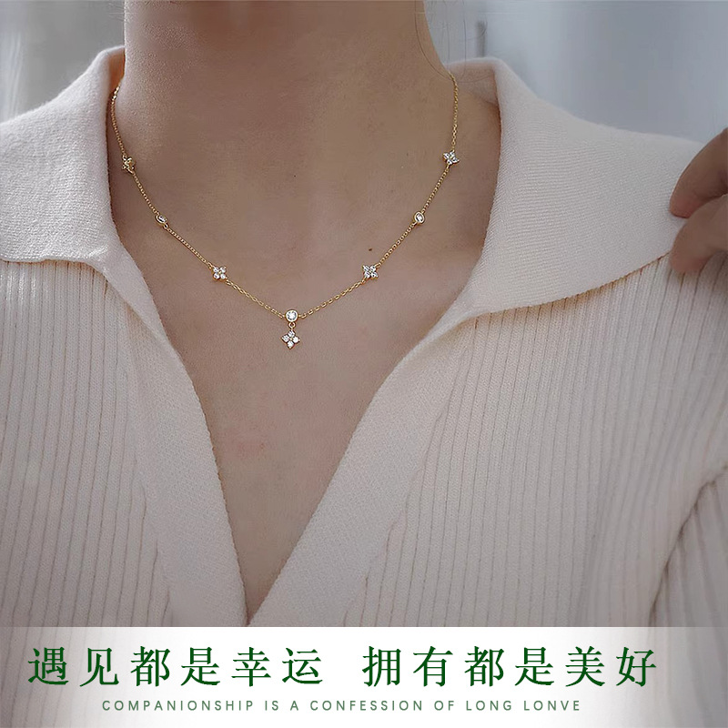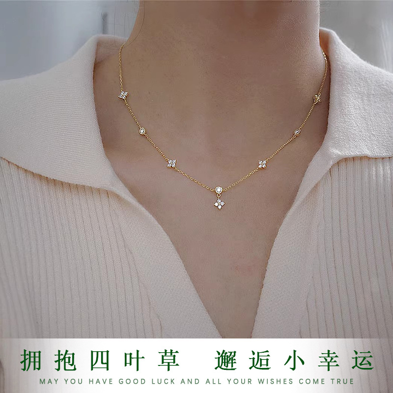 Small Fresh Lucky Four-Leaf Clover Necklace for Women 2025 New Popular Niche Versatile High-End Fine Clavicle Necklace