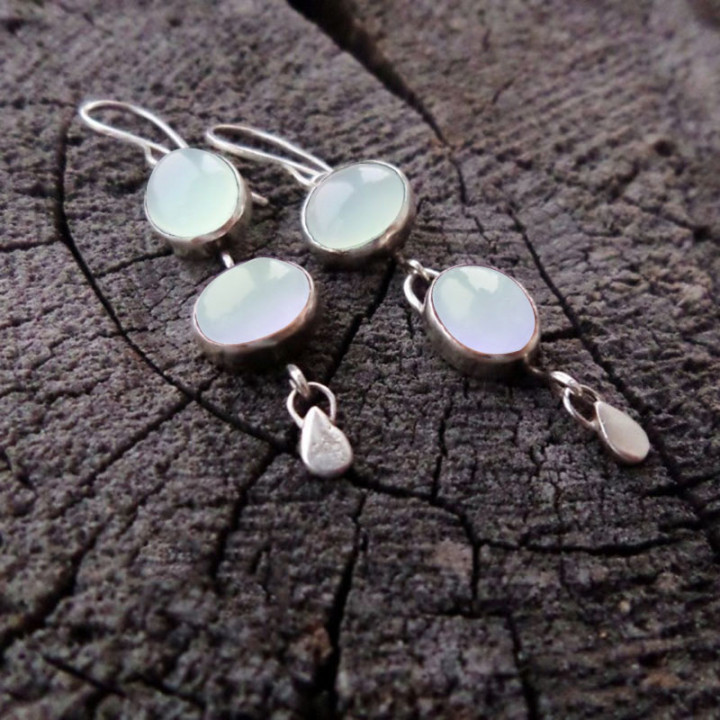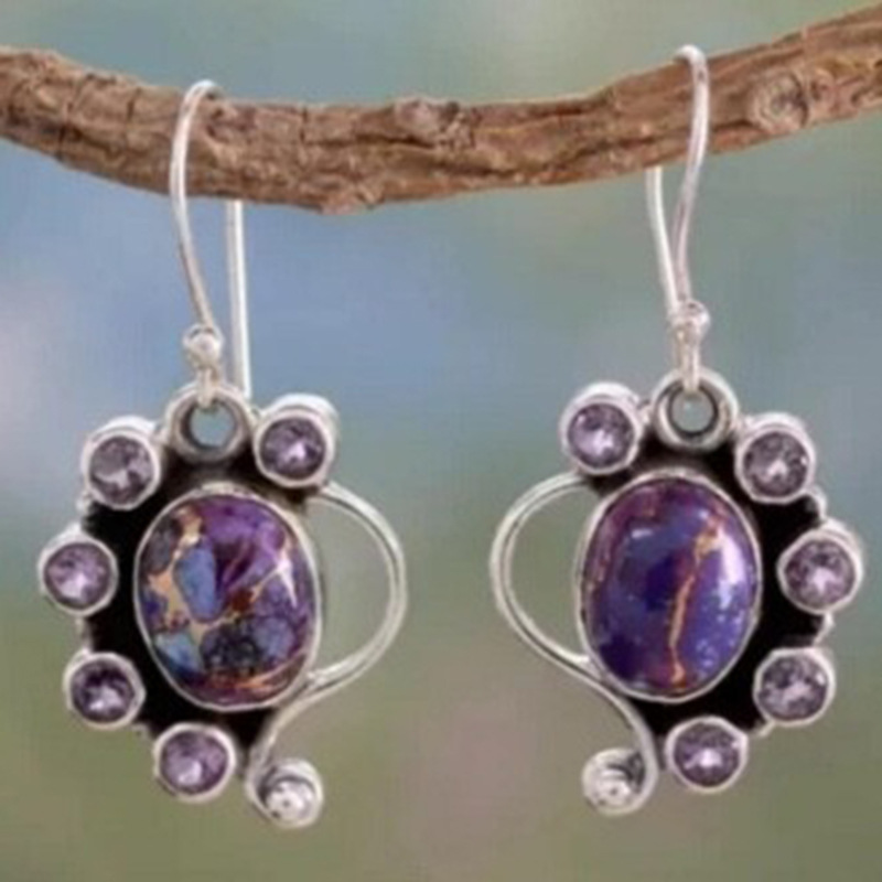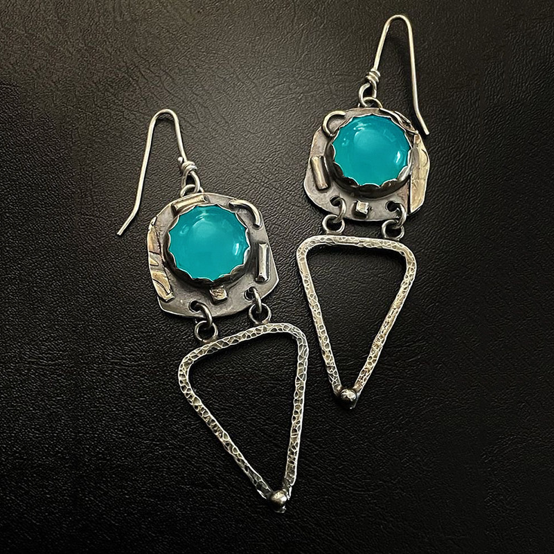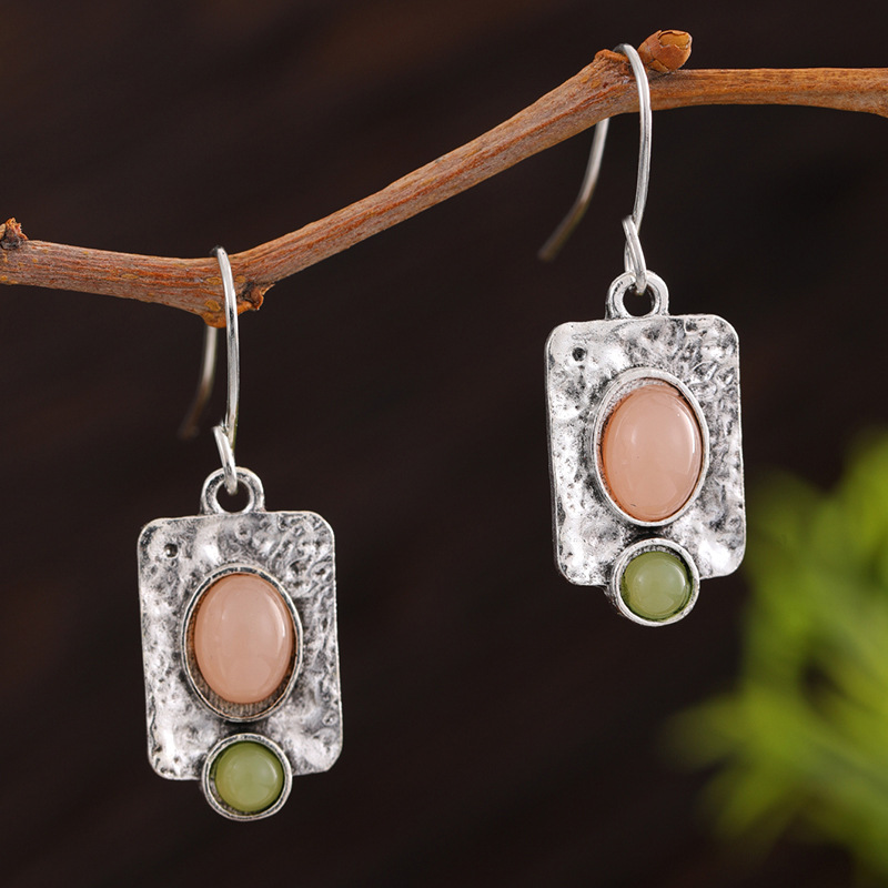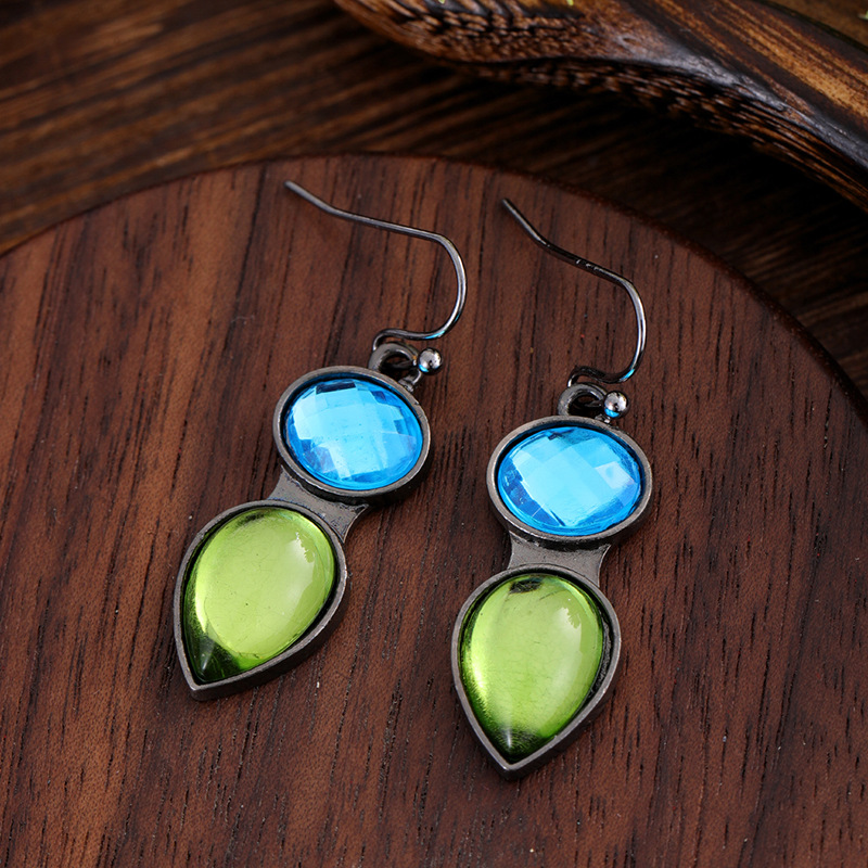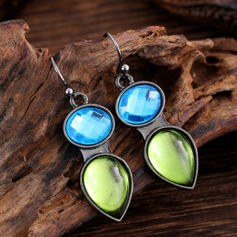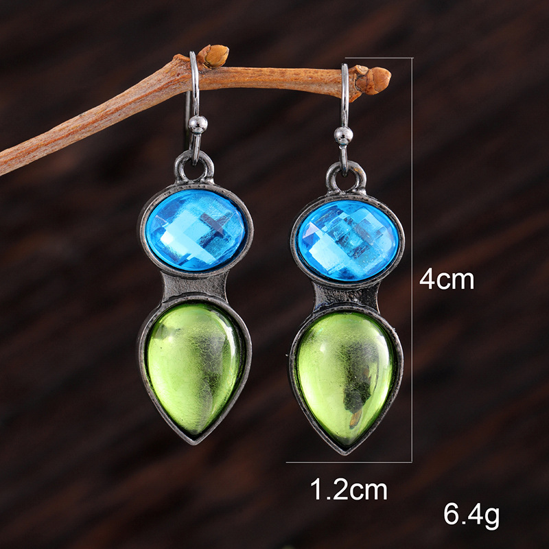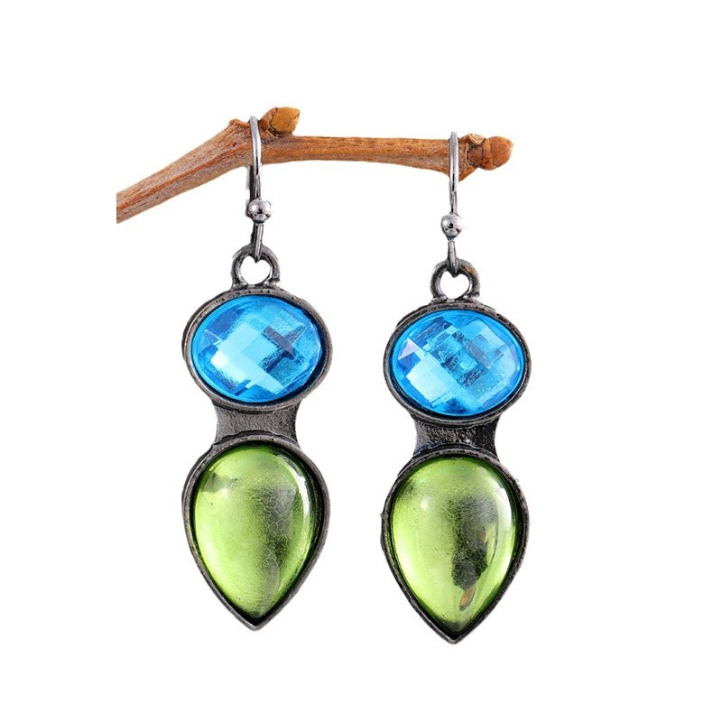 European and American Hot Selling Blue Green Gemstone Earrings Vintage Jewelry Drop Shape Design Distinctive Pendant Earrings Women's Earrings