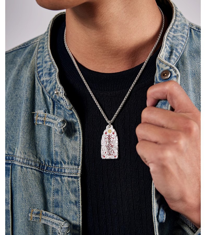 Terry Road Youth Golden Pendant Chinese Handmade Fashion Universal Necklace Pendant Protecting Wealth Transporting Necklace Jewelry