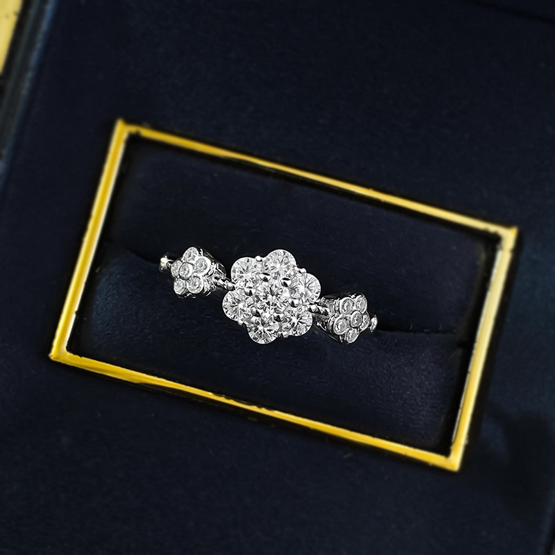 Mu Jing Jewelry New S925 Silver Five-flower Row Ring Multi-sided Wear Flower Shape Luxury Style Jewelry Row Ring