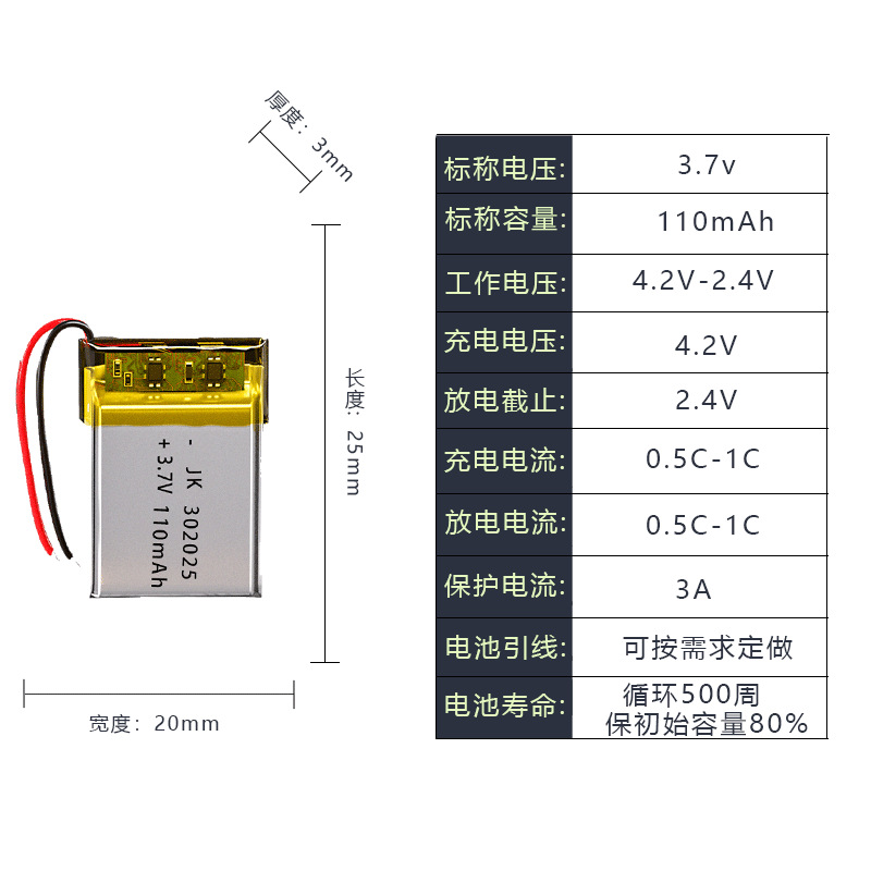 Specifications: 302025-110mah battery cell plus protection board outlet