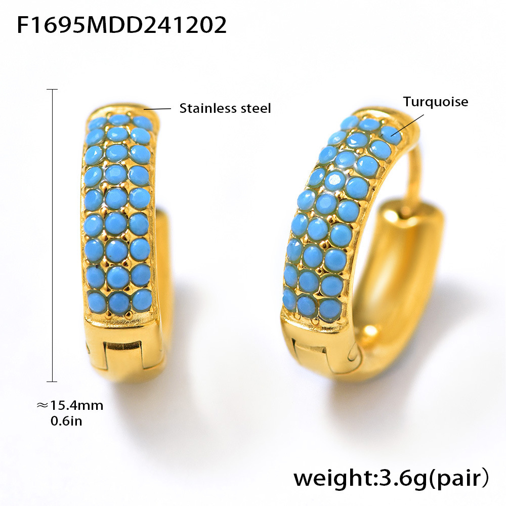 Color: F1695-Gold Blue Turquoise Earrings-small size
