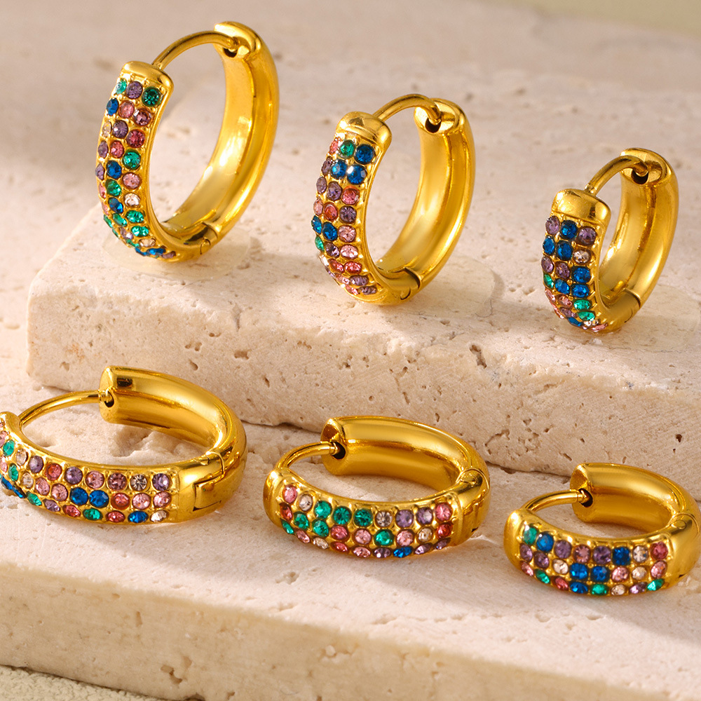 Color: F1695-Gold Mixed Color Zircon Earrings-small size