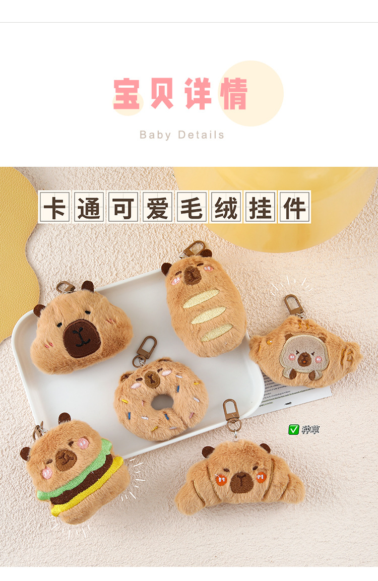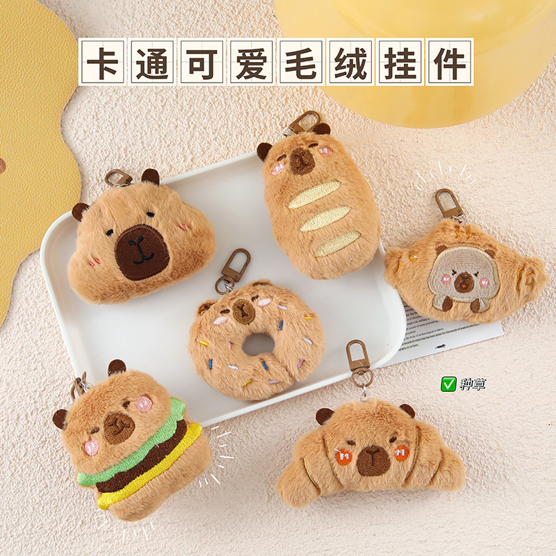 Cute Plush Capi Bread Doll Pendant Abalone Seafood Doll Keychain Girl Heart Bag Decoration Pendant