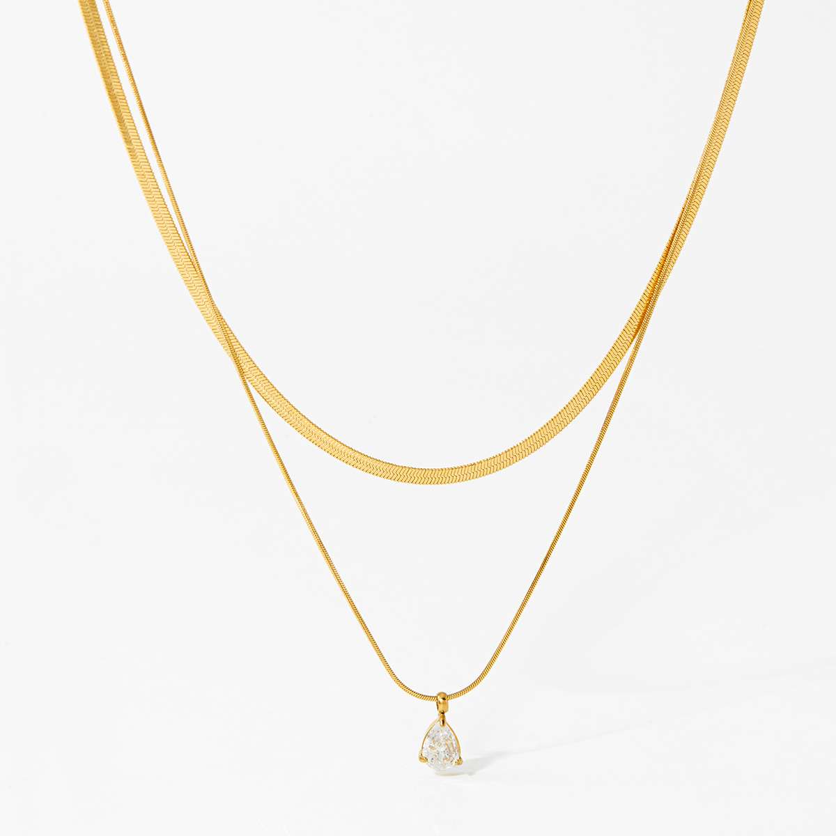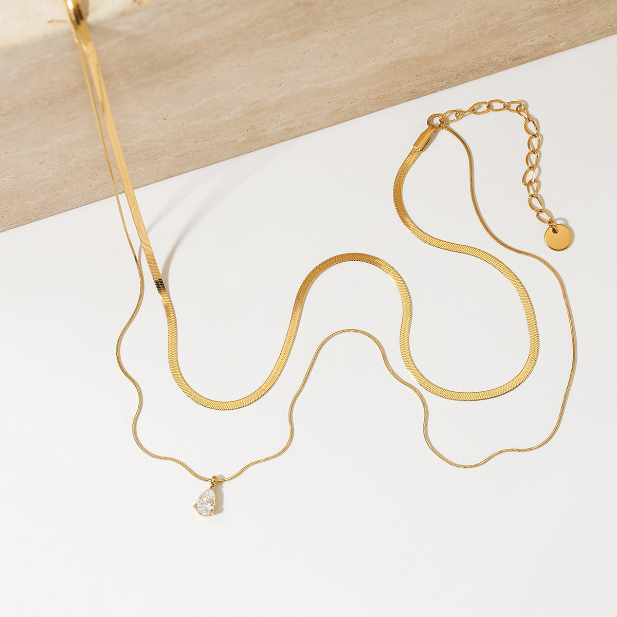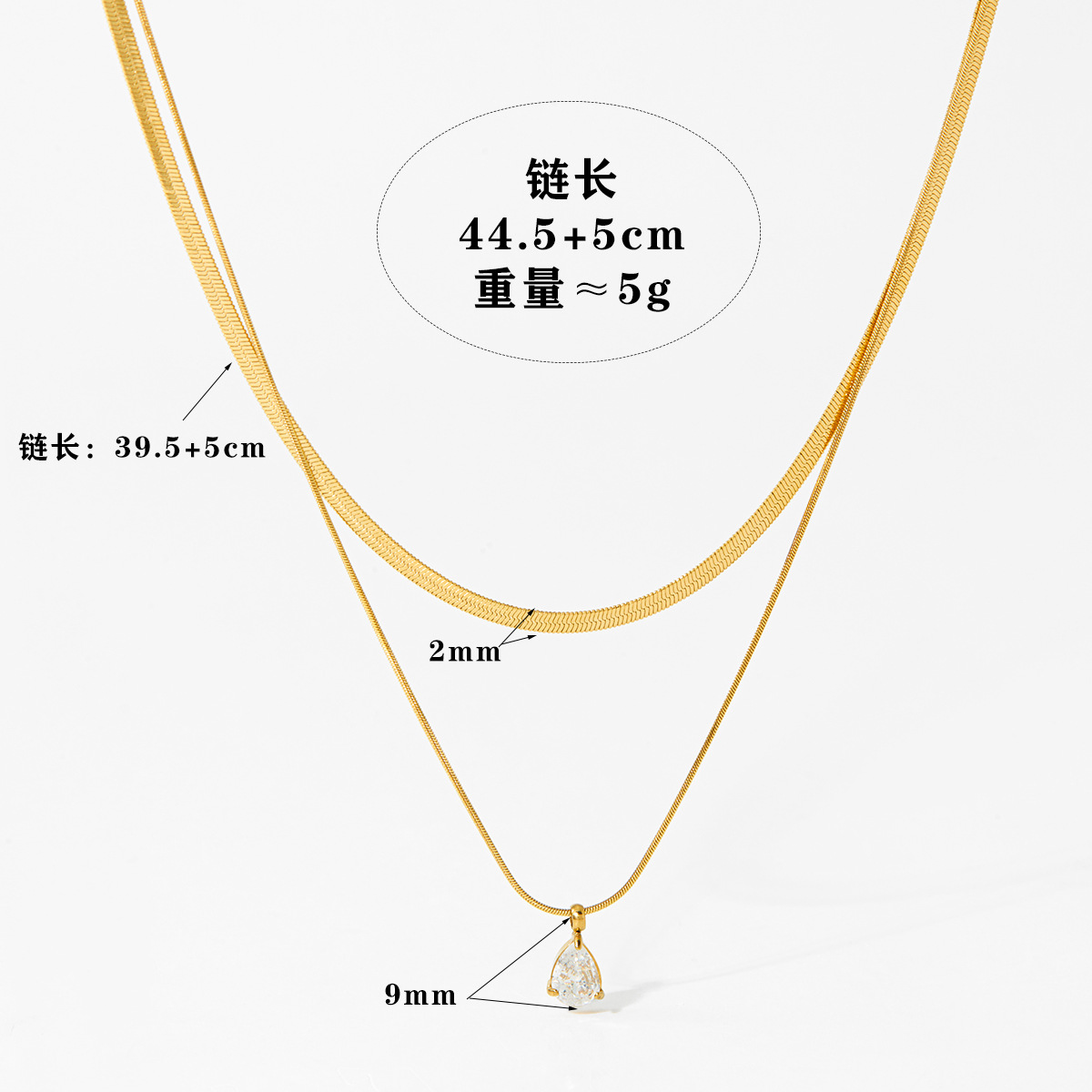 Cross-border new double-layer square snake chain water drop zircon necklace stainless steel design temperament Joker commuter jewelry batch