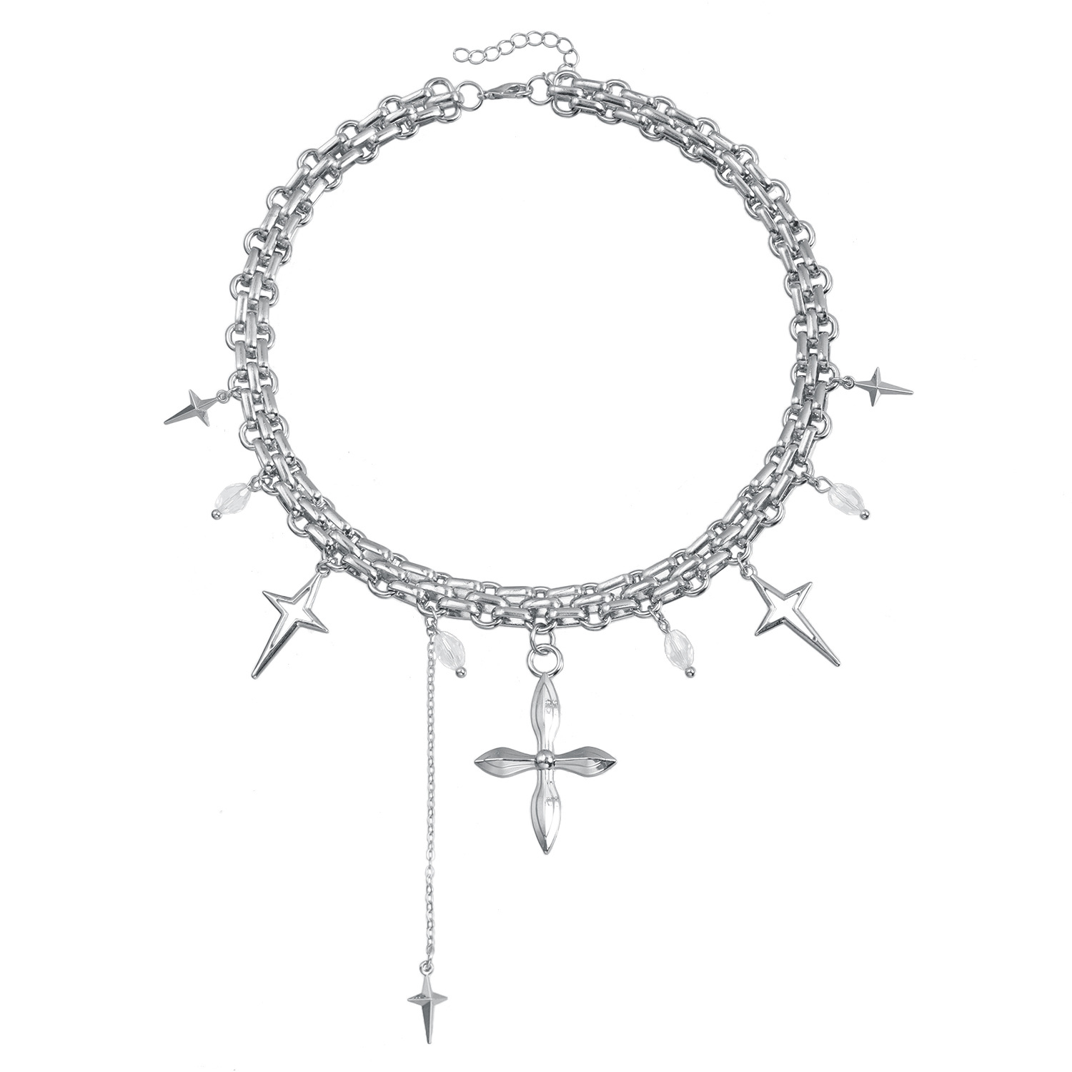 European and American cross-border jewelry heavy metal multi-style pendant clavicle chain ins cross awn star element necklace women