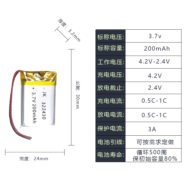 Specifications: 322430-200mah battery cell plus protection board outlet