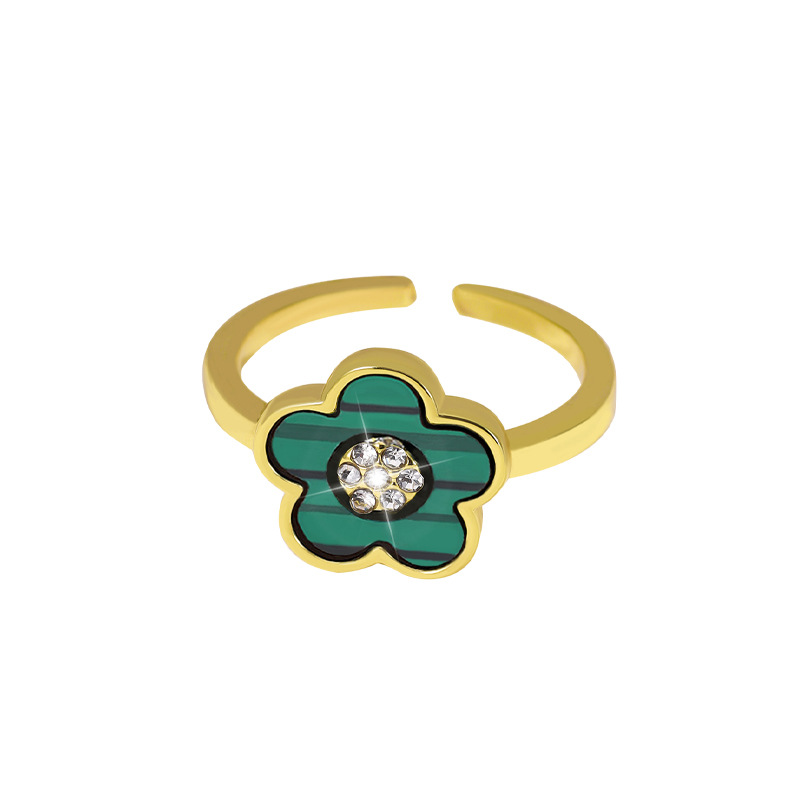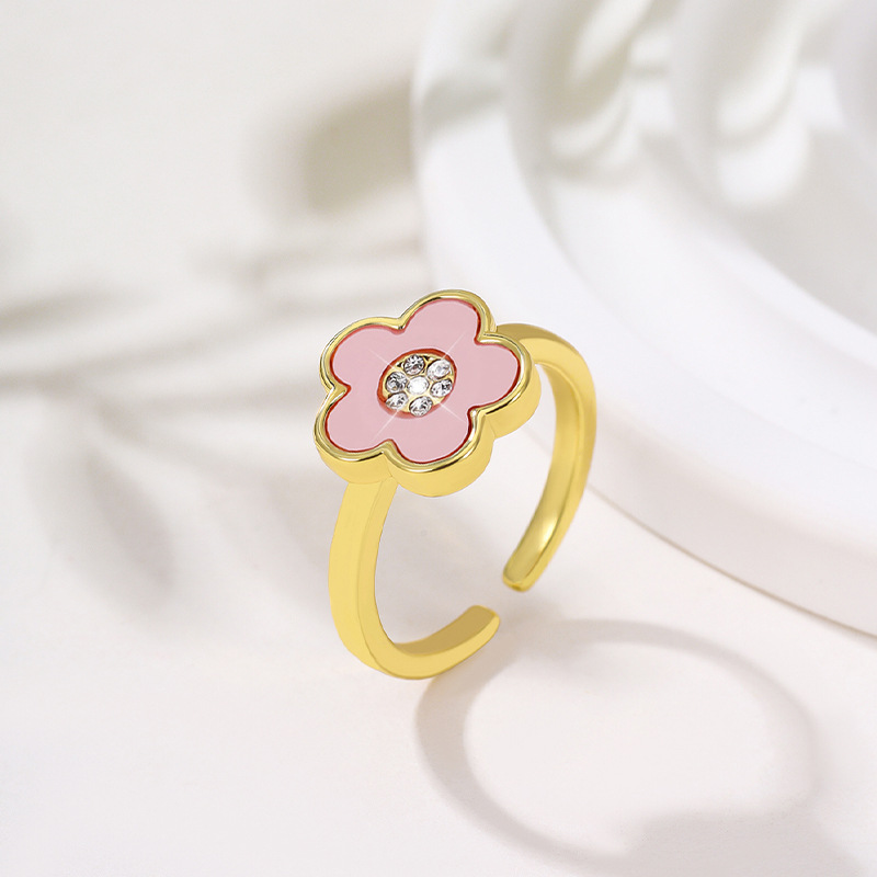 Cross-border Hot-selling Diamond-encrusted Lucky Five-petal Flower Open Ring Women's European and American Wish Hot-selling Gas-textured All-match Ring Ring