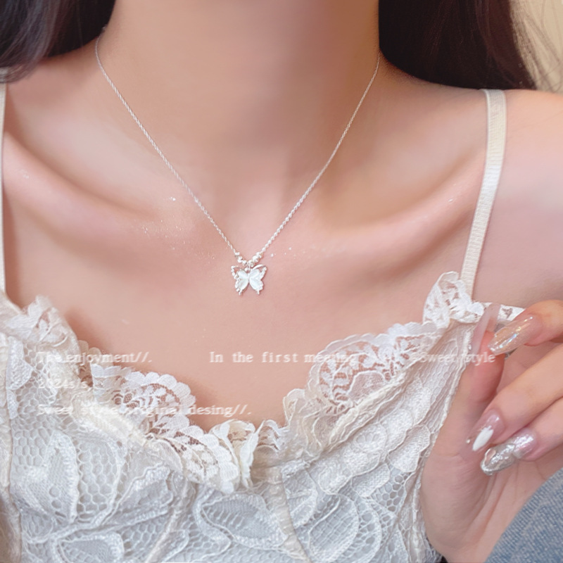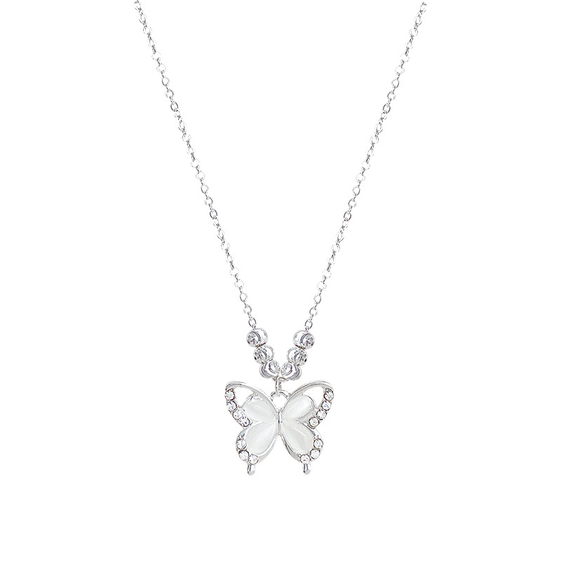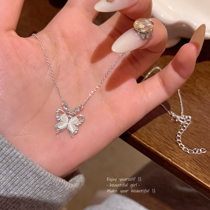 Sweet Elegant Cat's Eye Butterfly Necklace Women's Light Luxury Niche High-end Sense Internet Celebrity Same Style Clavicle Chain Necklace Chain Wholesale