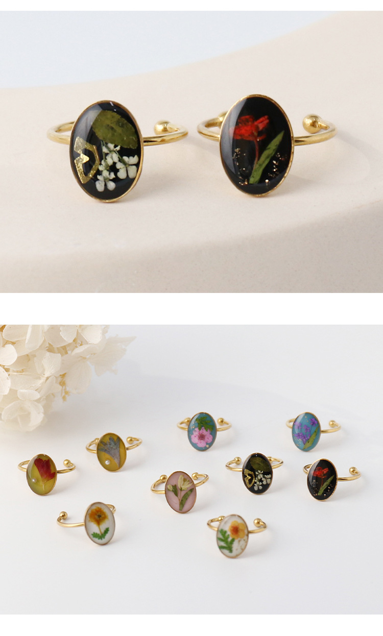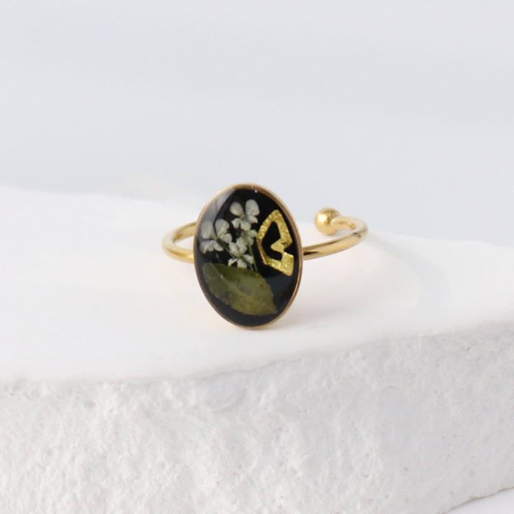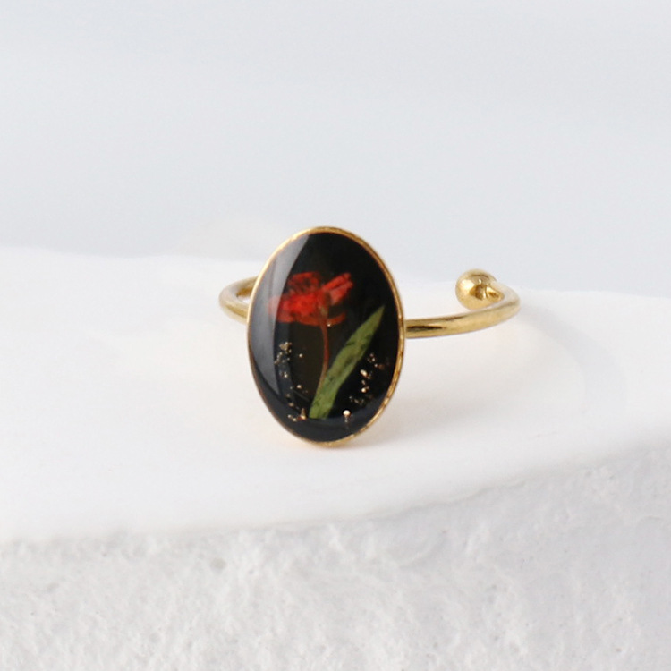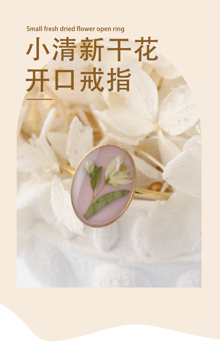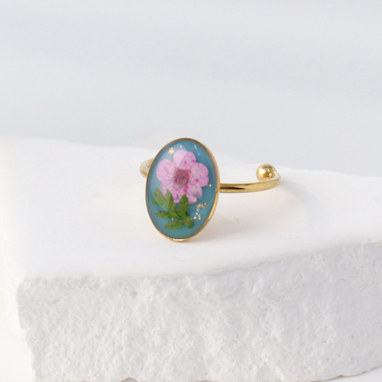 Aiwei's Popular Colorfulful Dried Flower Ring, Accessible Luxury Glue Hand Ornaments, Yiwu Small Commodities, Stainless Steel Gold-Plated Real Flower Ring