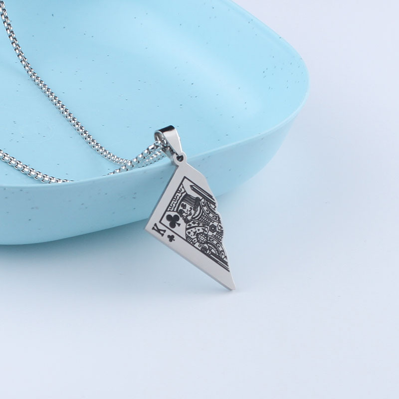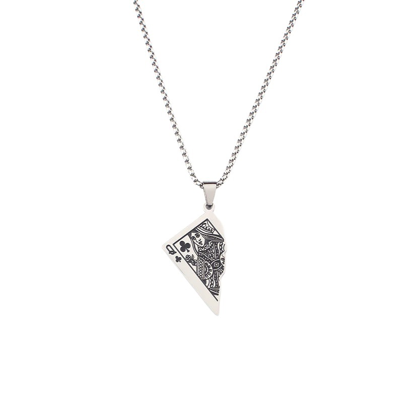 Men's Necklace European and American Cross-border Poker Q/K Pendant Hip-hop Personality Stainless Steel Wool Chain Women's Accessories Wholesale