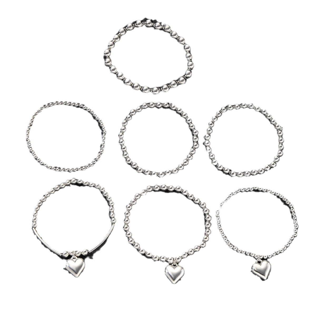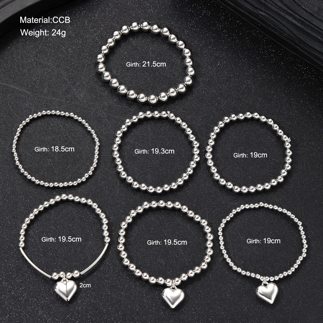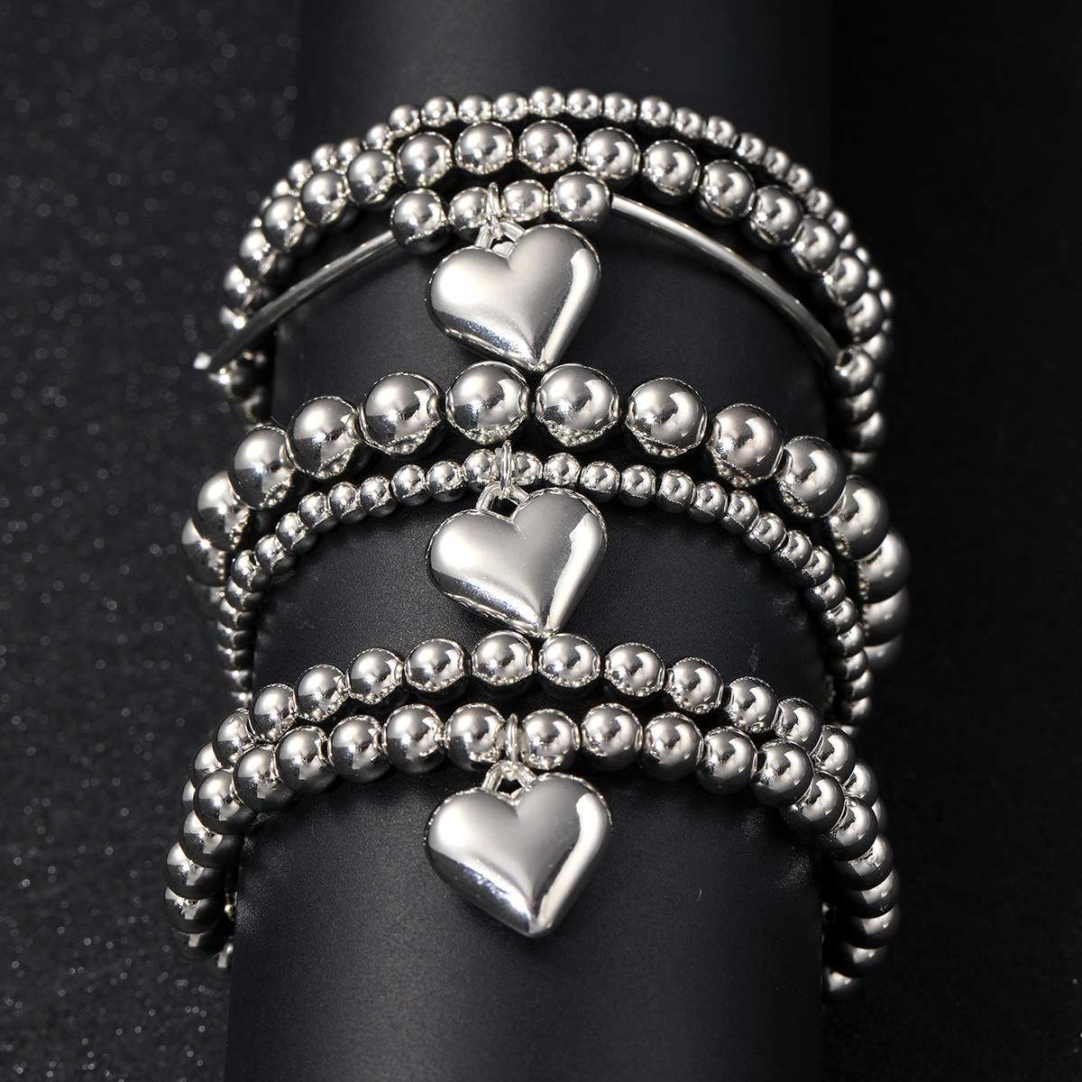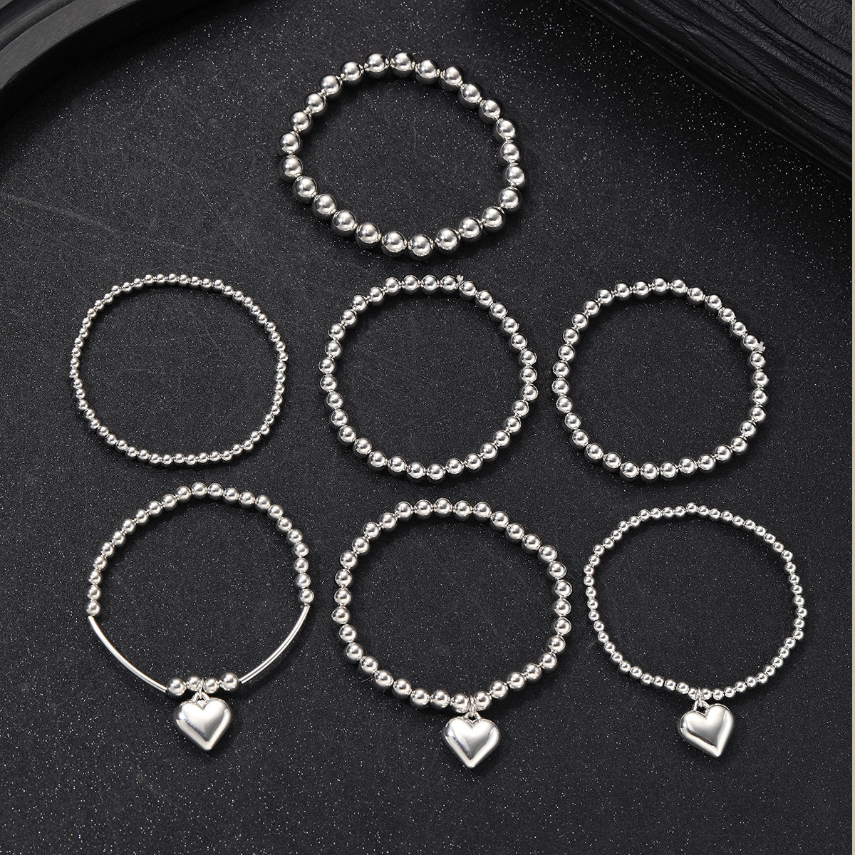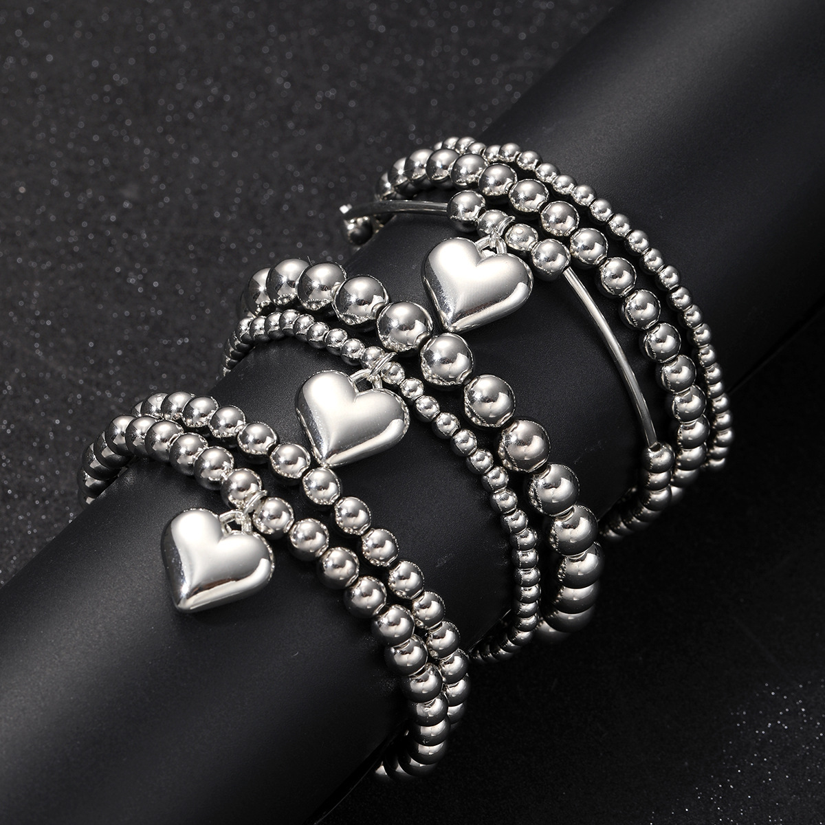 European and American bracelet Cross-border Stacked French Beaded Love Pendant Bracelet Women's Simple Imitation Pearl Elastic Bracelet