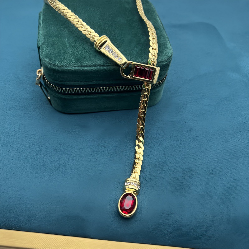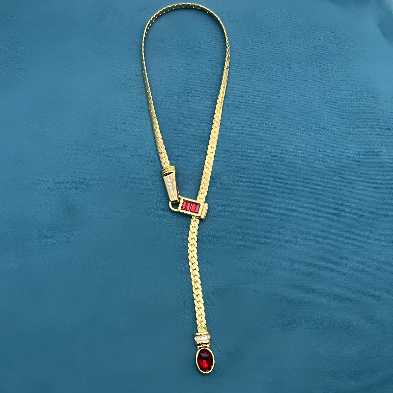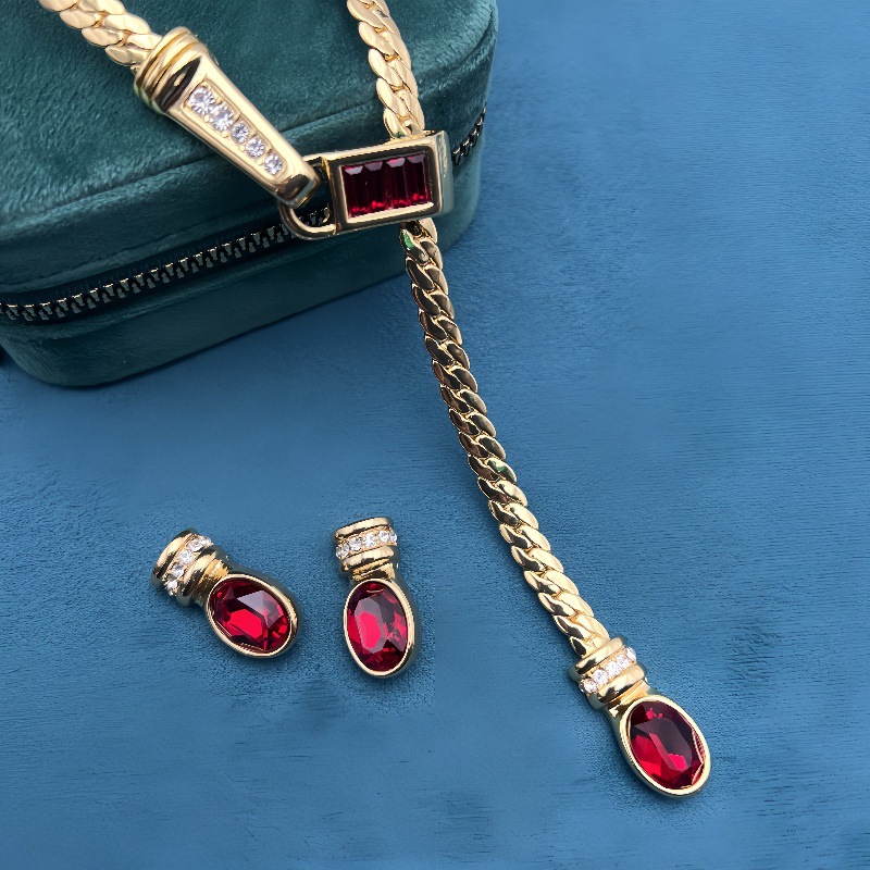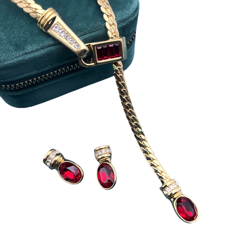Middle Ancient vintage Simple Snake Bone Y-shaped Glaze Necklace Vintage Copper Plated Real Gold Clavicle Chain Earrings suit