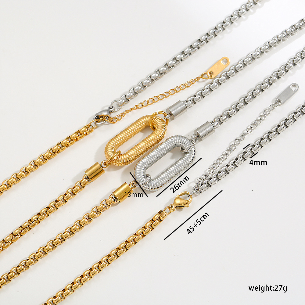 European and American Niche Simple Light Luxury Stainless Steel Plated 18K Gold Square Pearl Chain Gold and Silver Stitching U-Shaped Pendant Necklace