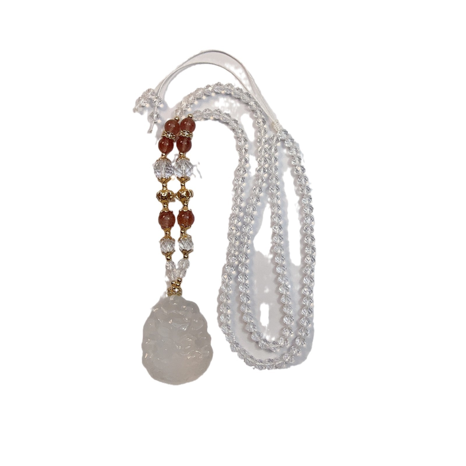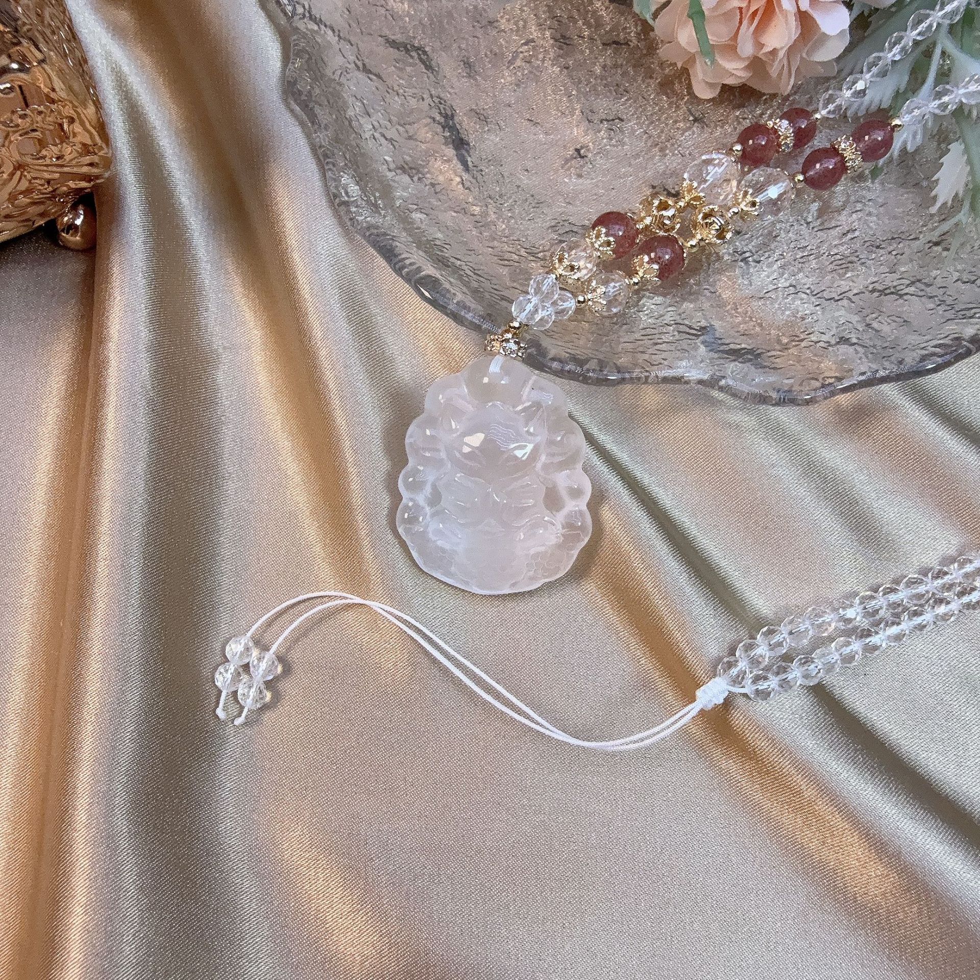 Natural Milk White Crystal Phoenix Nine Double-sided Three-dimensional (Reverse Ruyi) Light Luxury Fashion Elegant Sweet Ladies Sweater Chain