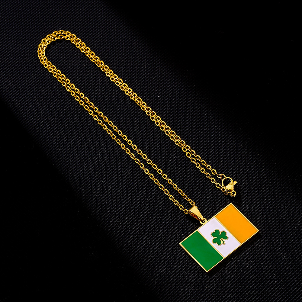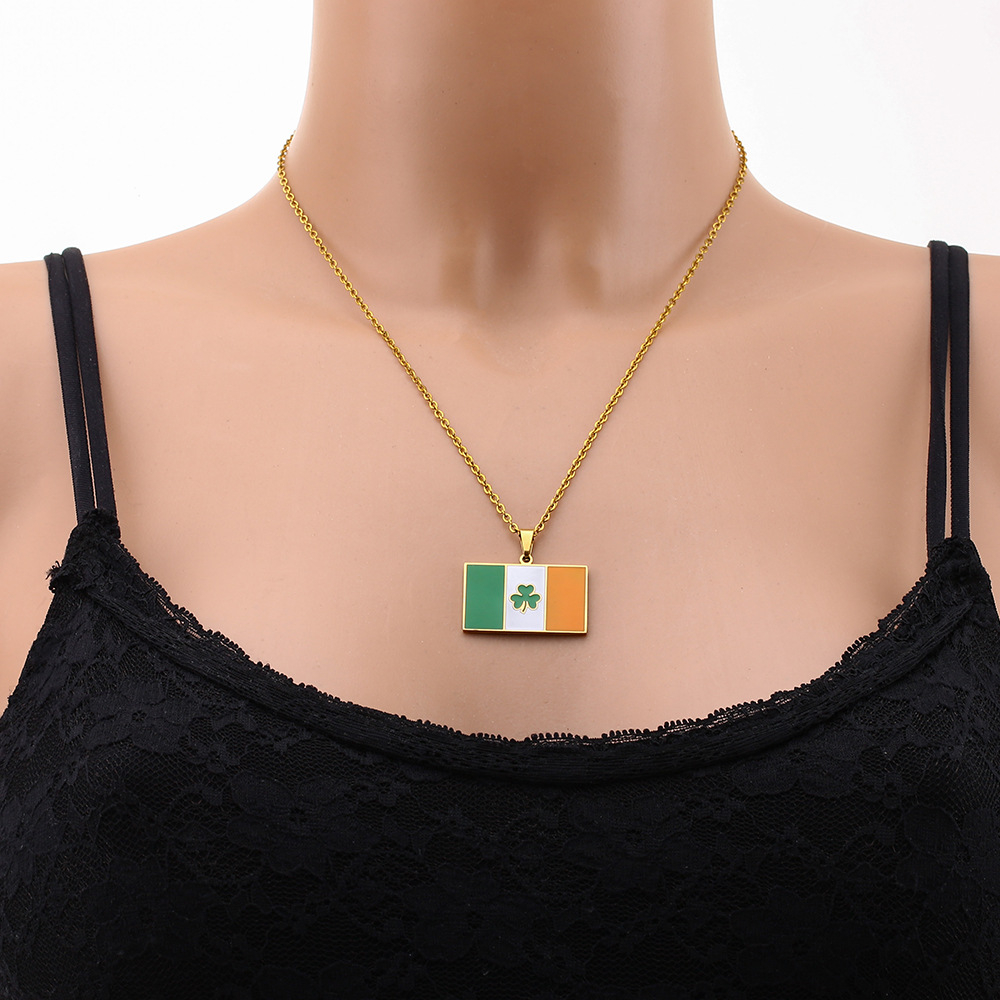 Cross Border Vintage Oil Drop Irish Flag Necklace Men and Women Stainless Steel Couple Patrick Day Trend Accessories