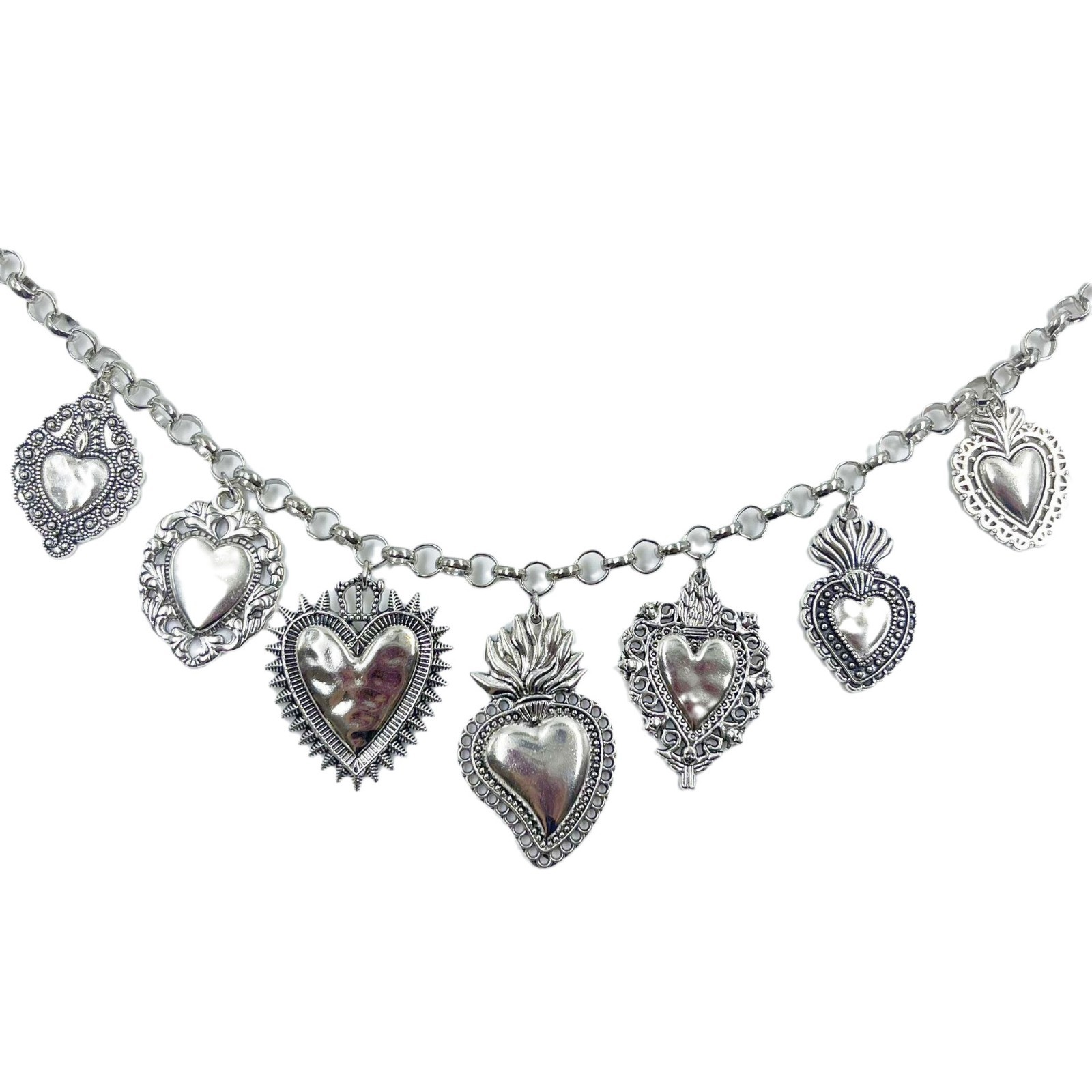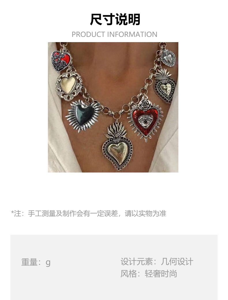 Europe and the United States hot selling retro religious multiple sacred heart pendant necklace silver chain personality design female jewelry wholesale