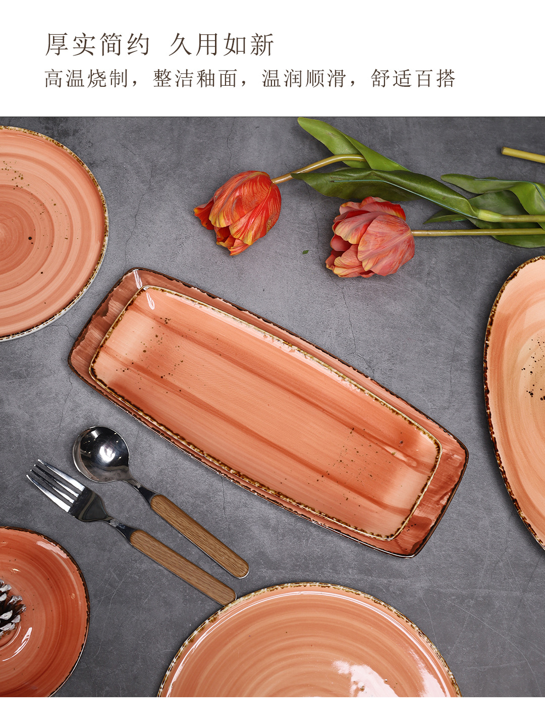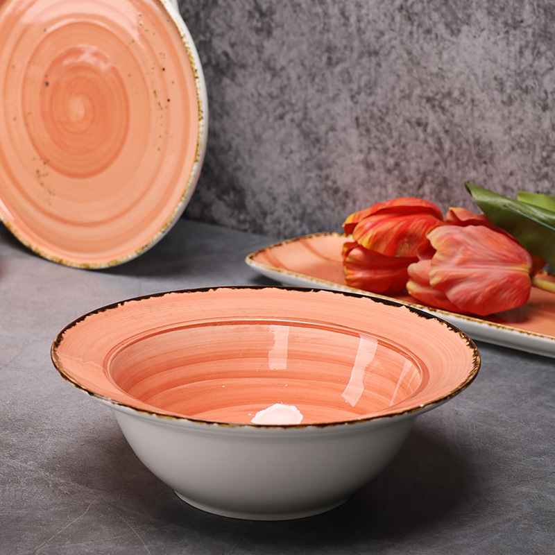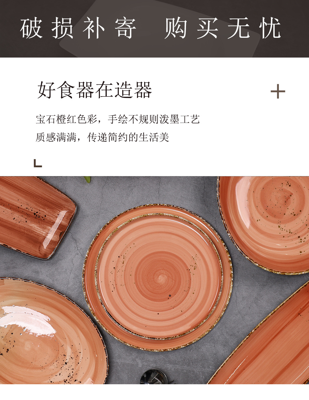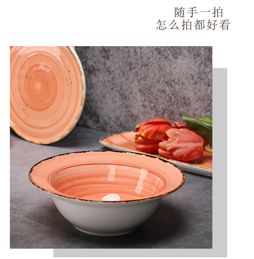 Hand-painted gem red splash ink bowl ceramic tableware plate bowl hotel restaurant western food plate soup bowl factory direct sales