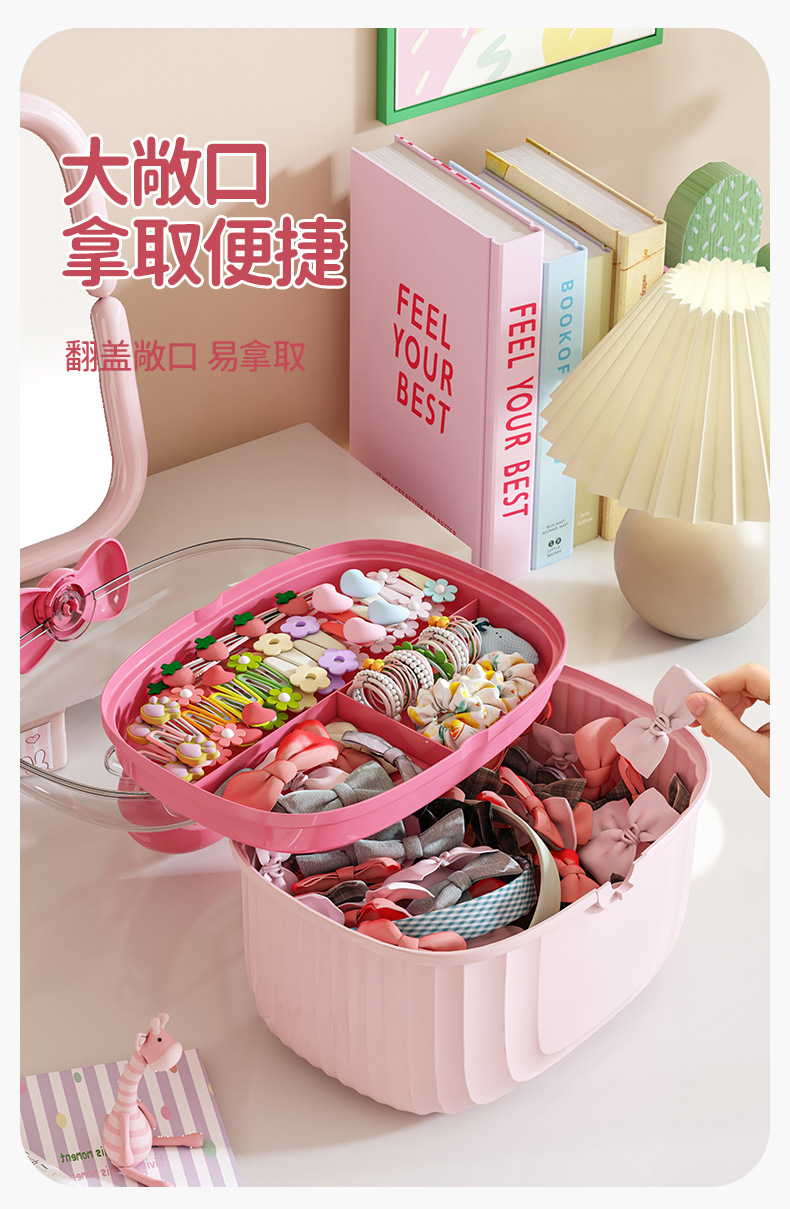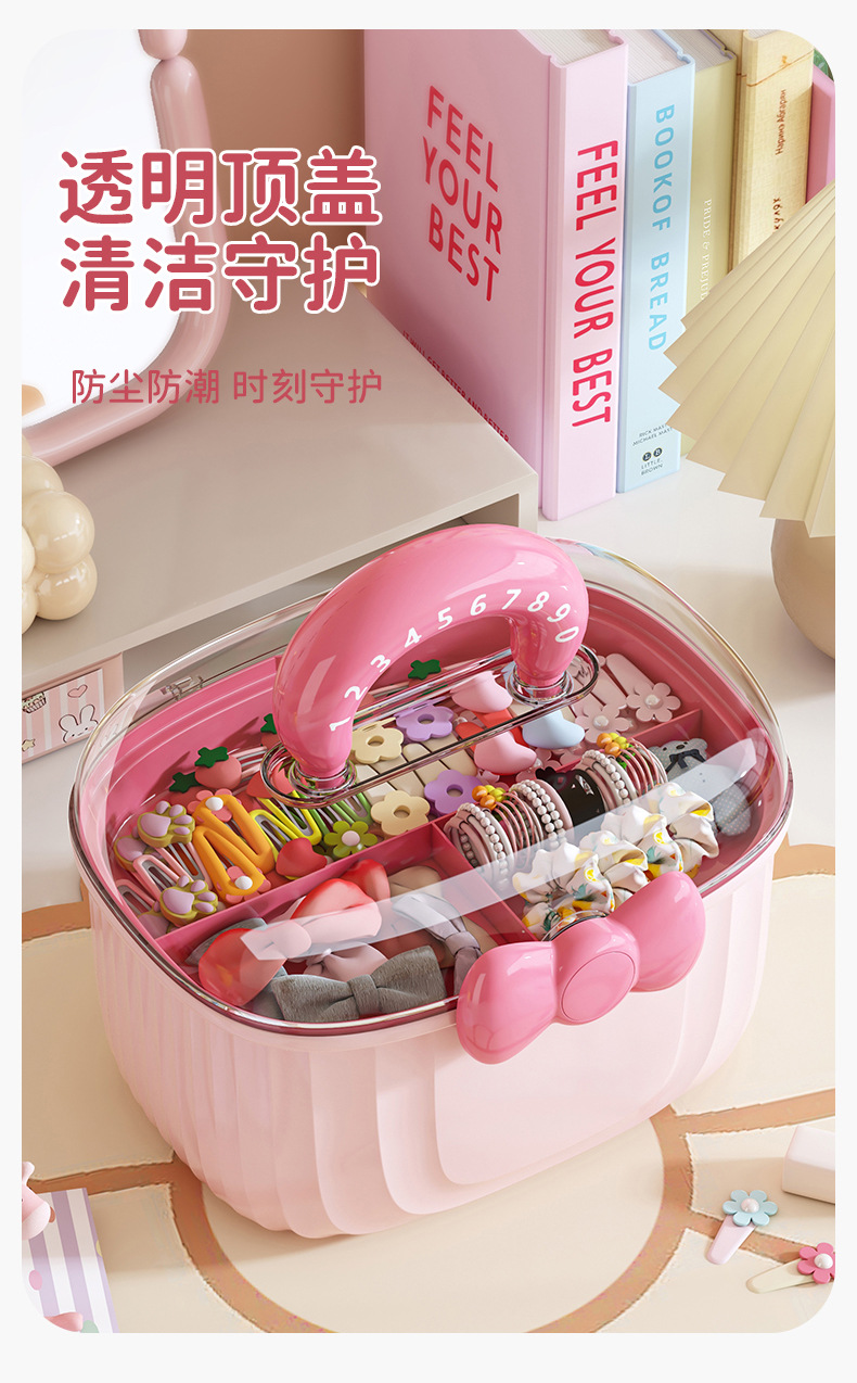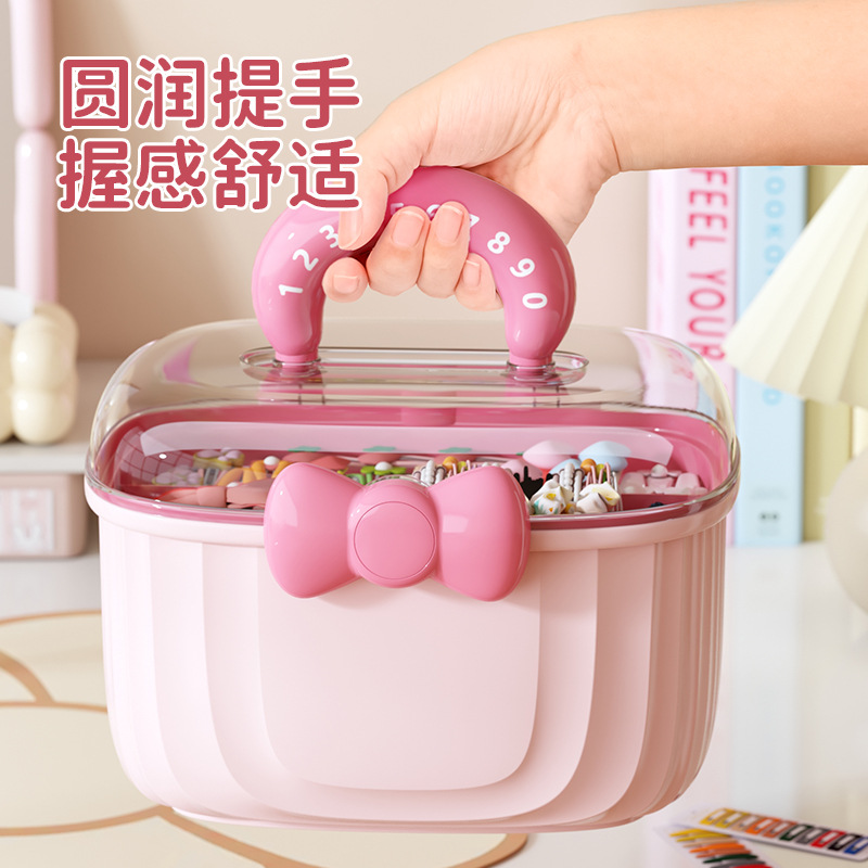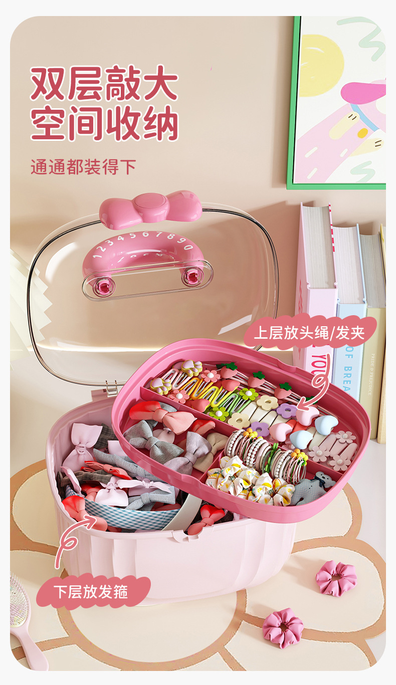 Portable storage box with lid compartment children's hair accessories desktop plastic jewelry transparent double creative cute storage box