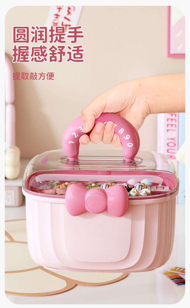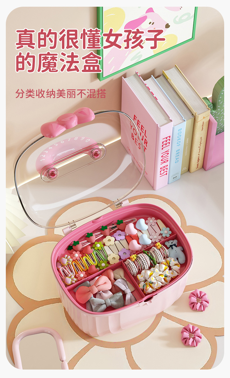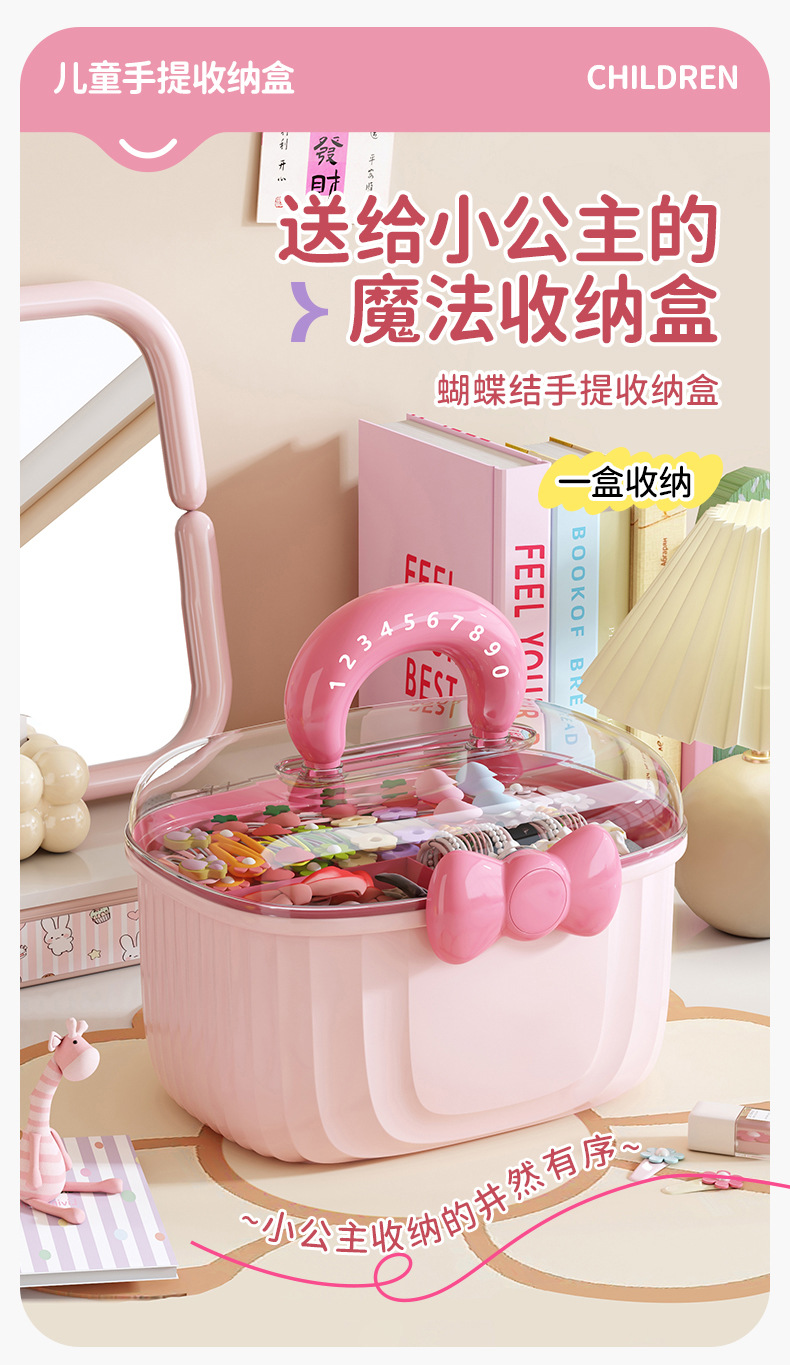 Portable storage box with lid compartment children's hair accessories desktop plastic jewelry transparent double creative cute storage box