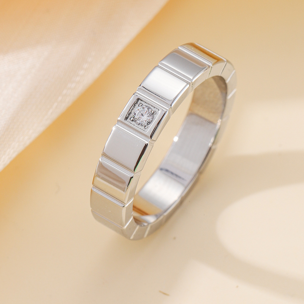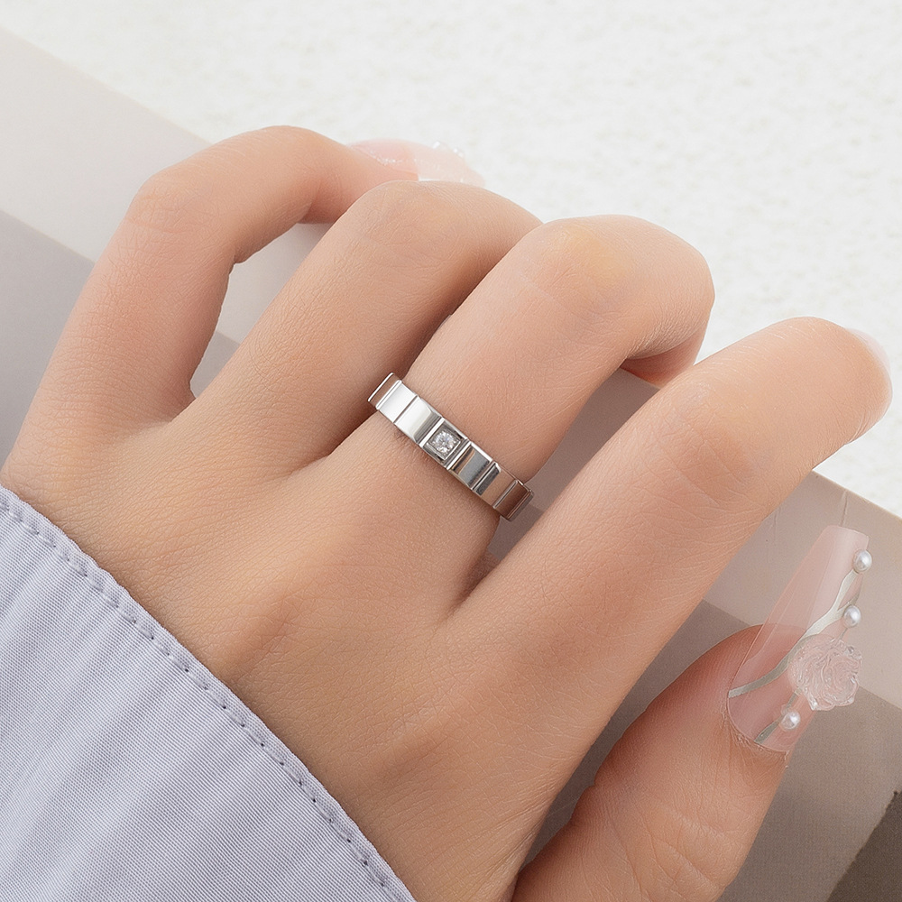 Fashion Couple's Ring Ice Block Diamond Ring Titanium Steel Color-free Niche Design Simple Men's and Women's Ring Gift