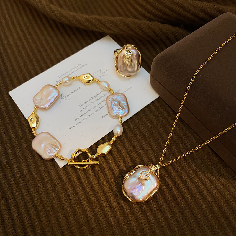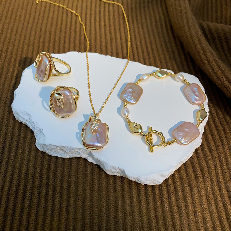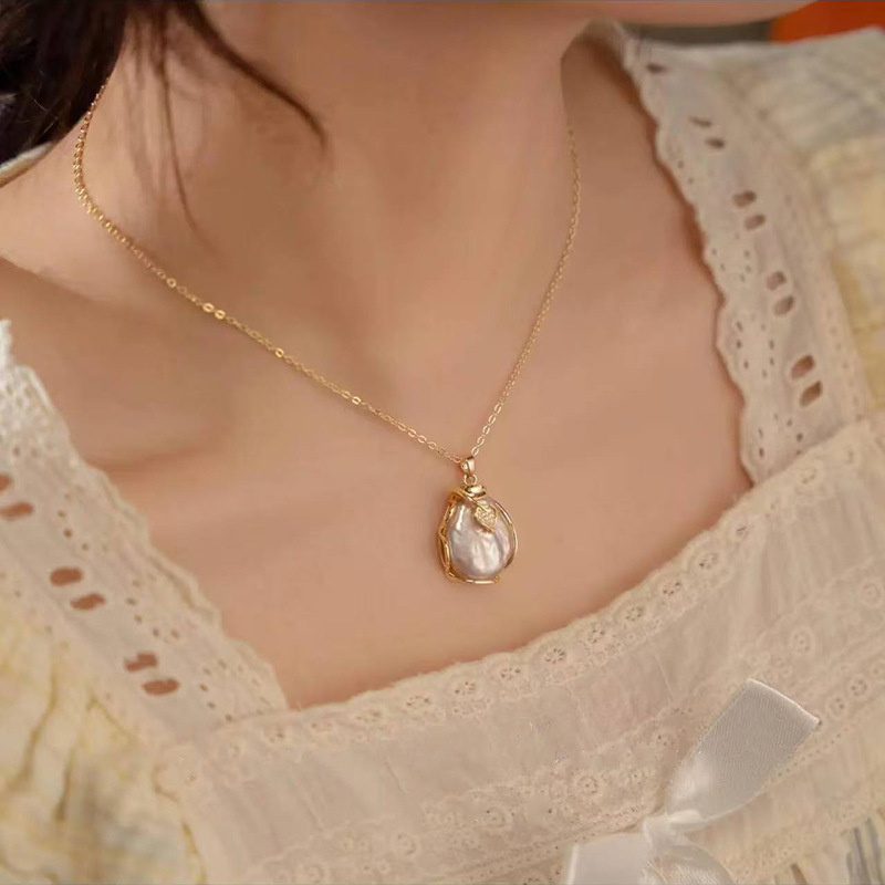 Natural Purple Baroque Freshwater Pearl Pendant Necklace Women's Light Luxury Niche Fashion Elegant Design Sense sweater chain