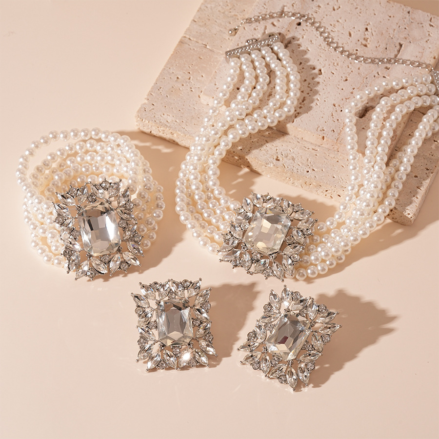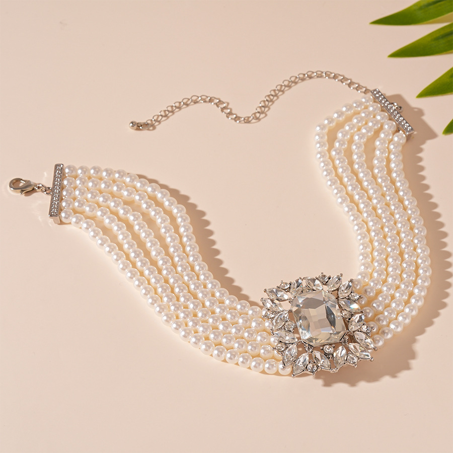 Color: silver diamond pearl multilayer necklace