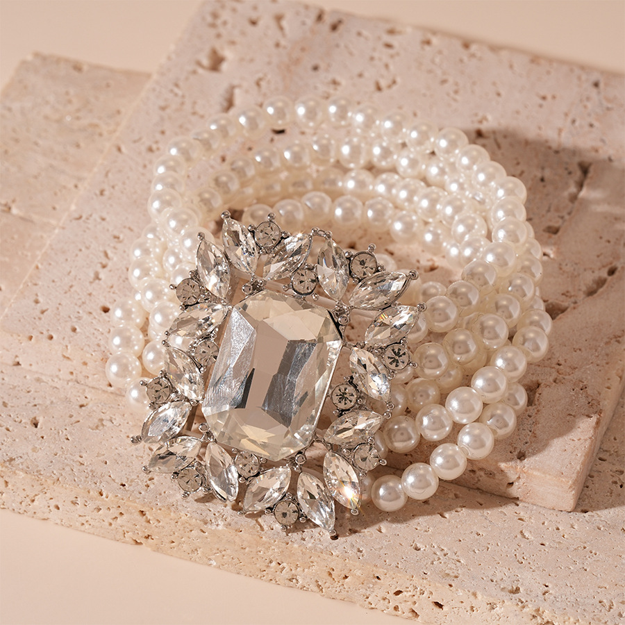Color: silver Diamond Pearl Multi-Layer Bracelet