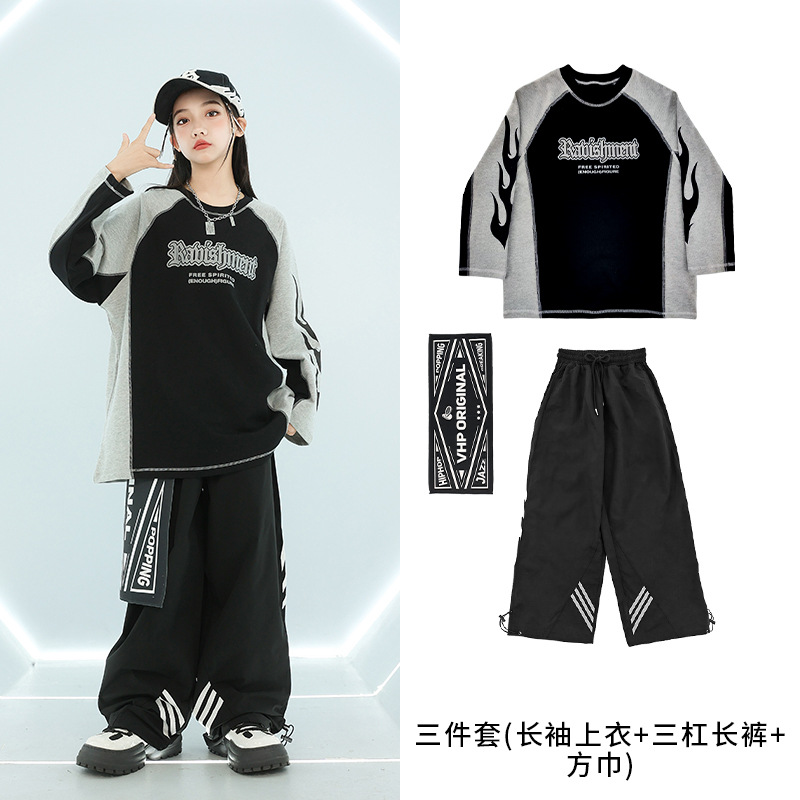 Color: Three-piece suit [top + three-bar trousers + square scarf]