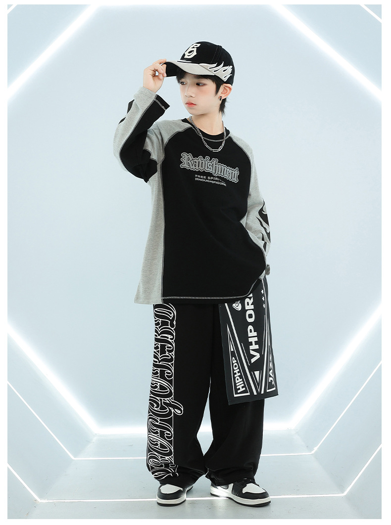 Color: Four-piece set [top + three-bar trousers + square scarf + hat]