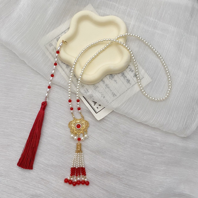 Antique Ming Style Necklace with Pressed Flap String New Chinese Style Long Tassel Back Cloud Soft Wreaths Guofeng Han Style Horse Face Dress Accessories