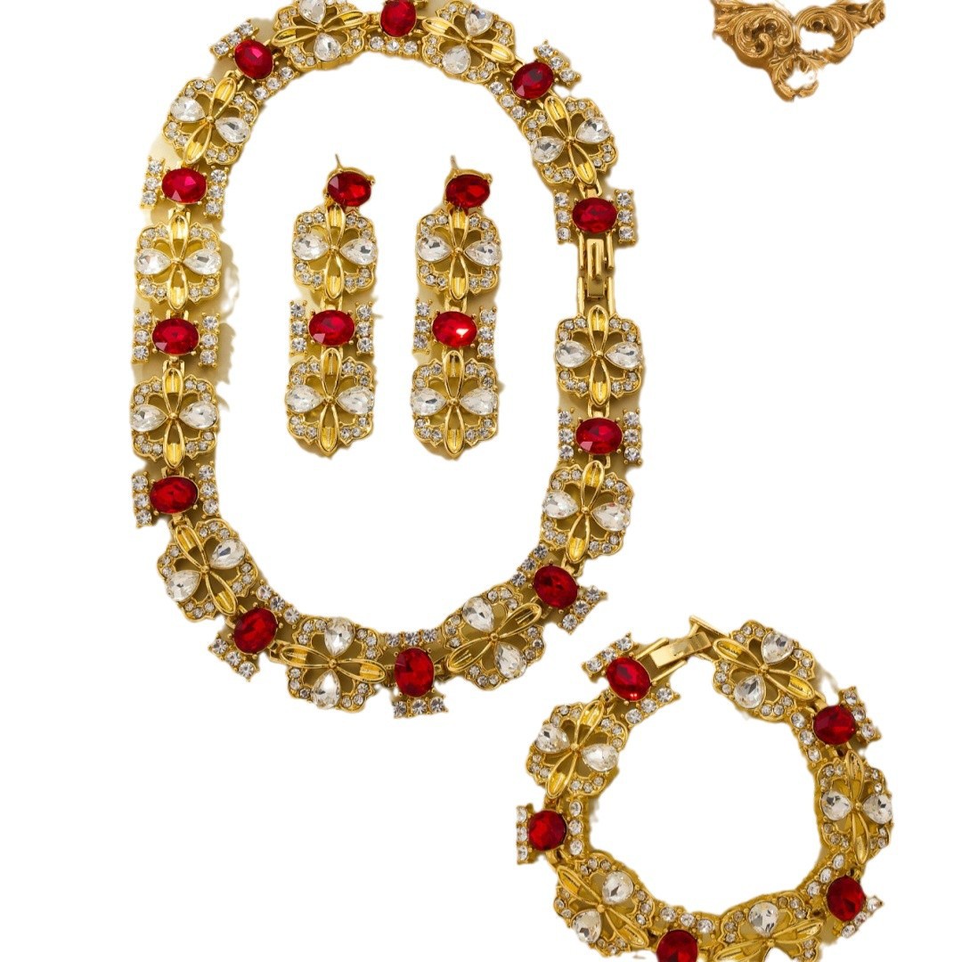 Middle Ancient French Fashion Palace Style Hollow-out Jewel Earrings Necklace Retro Light Luxury Private Set Middle Ancient Style