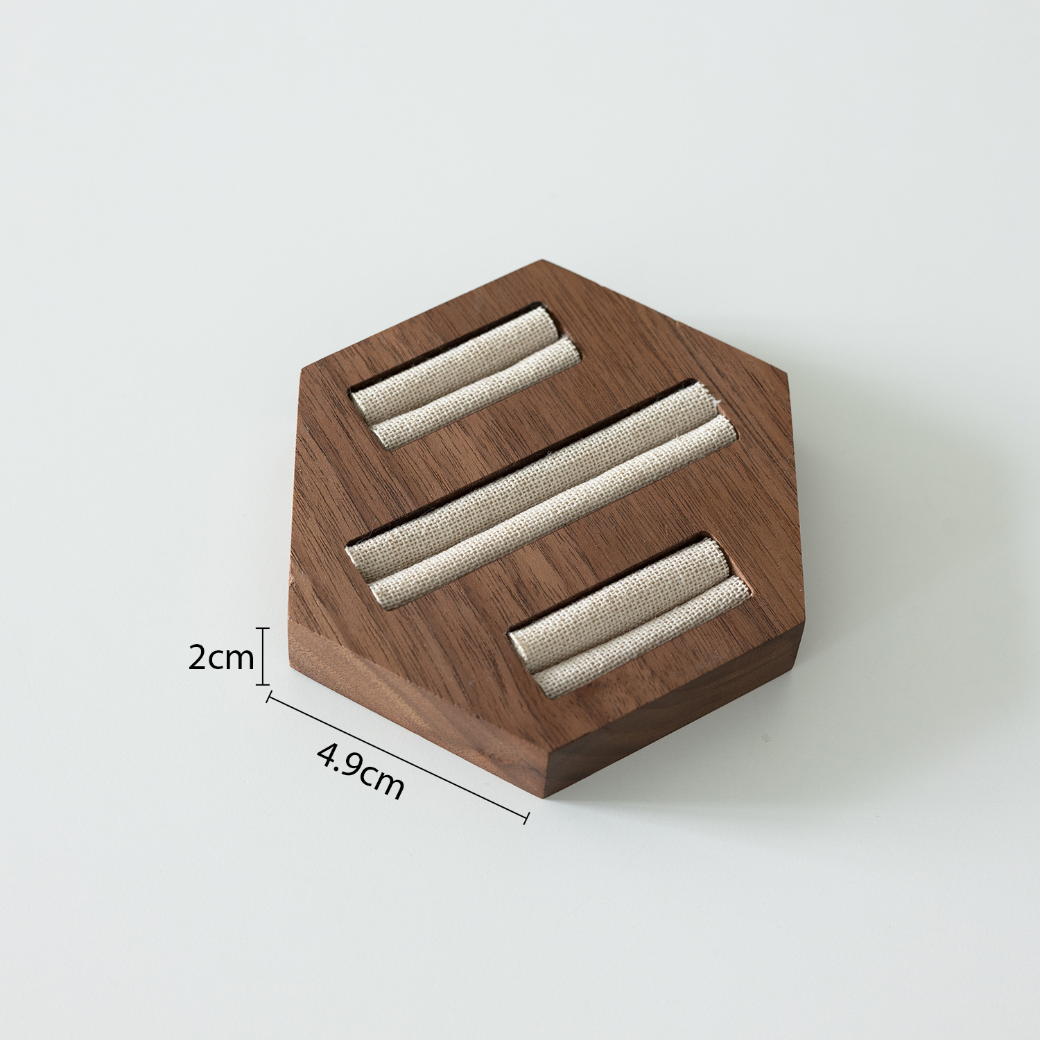 Color: Walnut six-sided linen ring holder