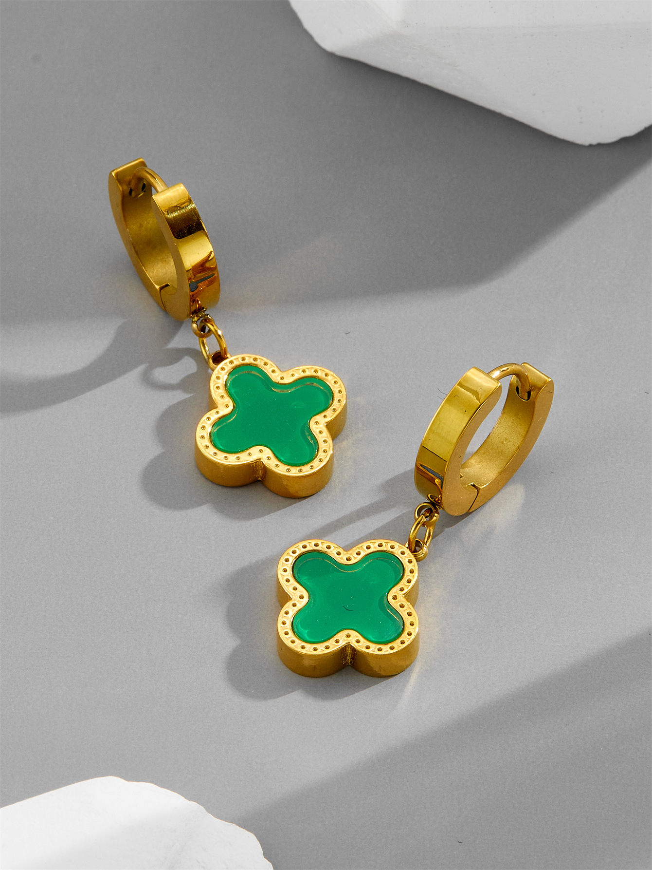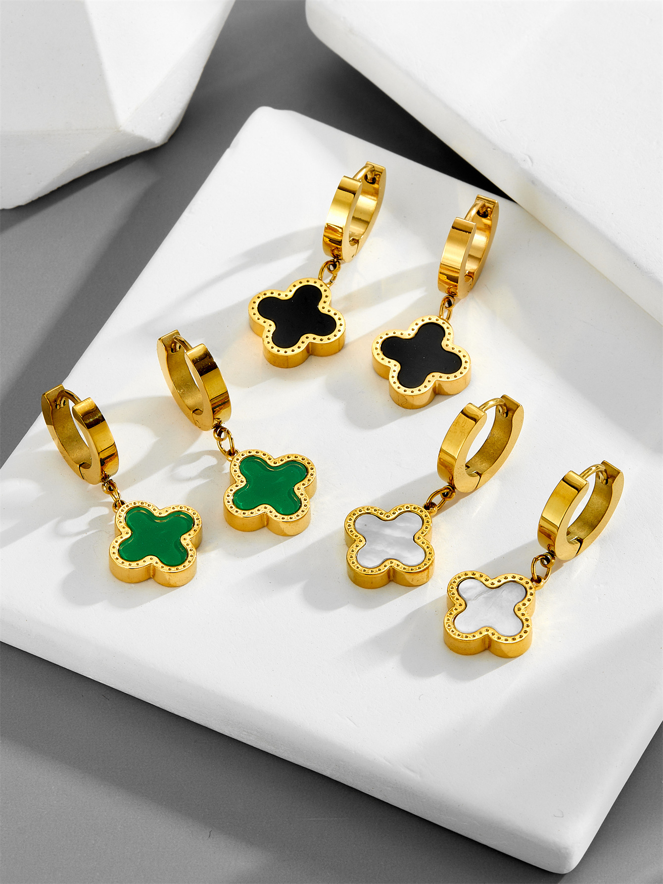 Korean Style Lucky Four-leaf Clover Titanium Steel Ear Buckle Simple All-match Short Earrings Light Luxury 18K Edge Earrings