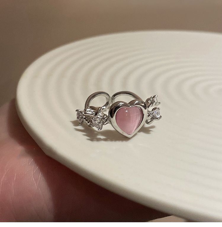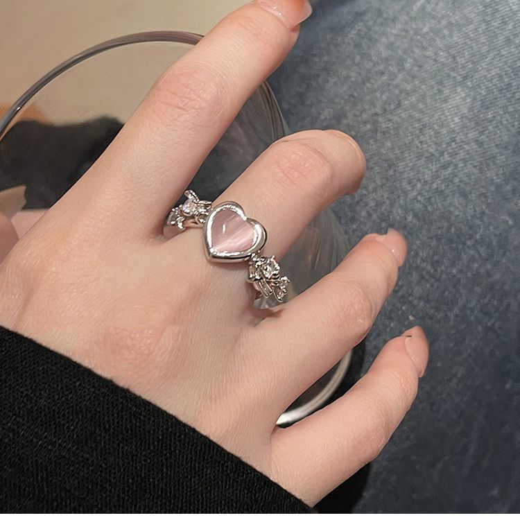 Pink Love Ring Women's Niche Design High-end Girl's Pink Diamond Light Luxury Unique Adjustable Fashion Personality Tide