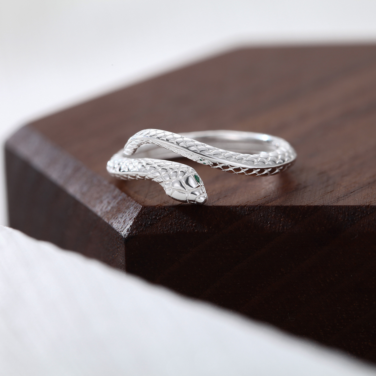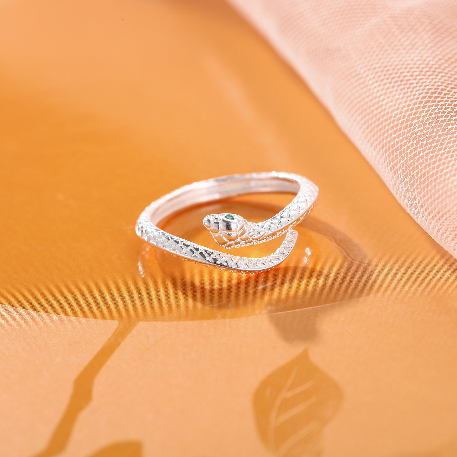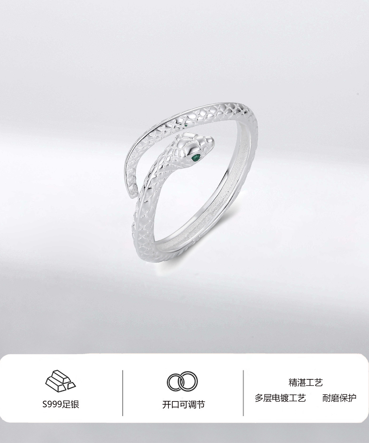 S999 Sterling Silver Foot Silver Fashion Silver Snake Ring Index Finger Spirit Snake Zodiac Snake Benmingnian Trendy Women's Open Mouth Ring