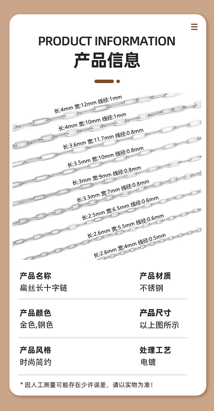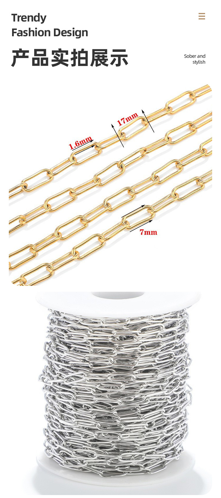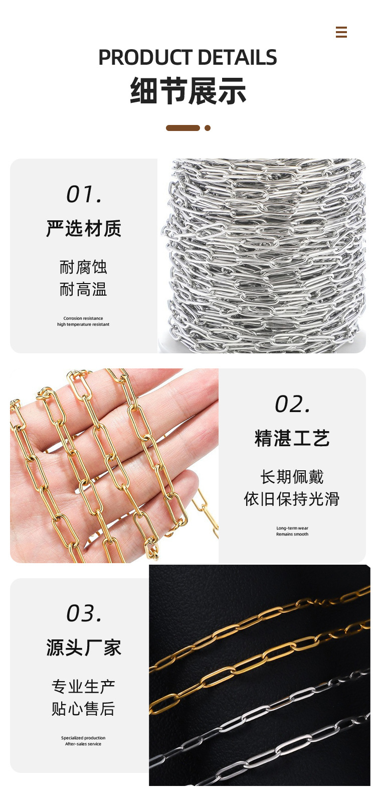 Stainless steel flat wire long cross chain DIY jewelry chain chain non-fading cross-border women's titanium steel necklace