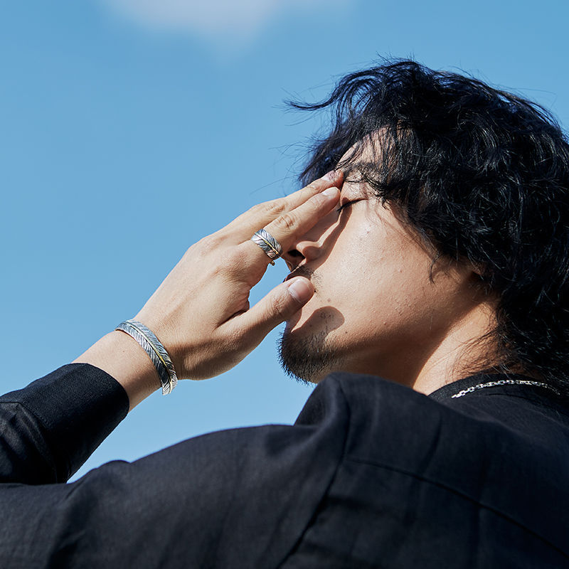 Yanyu Niche Design Feather Ring Men's Retro Trendy Versatile Takahashi Goro Index Finger Ring Factory Direct Sale