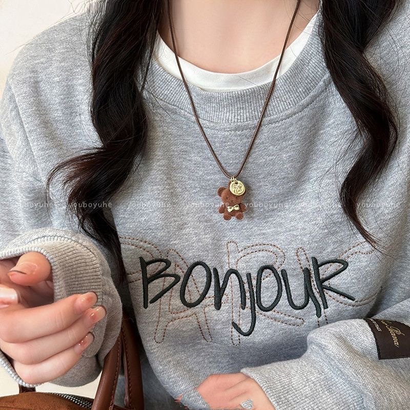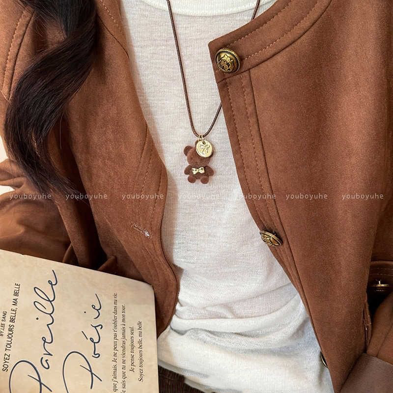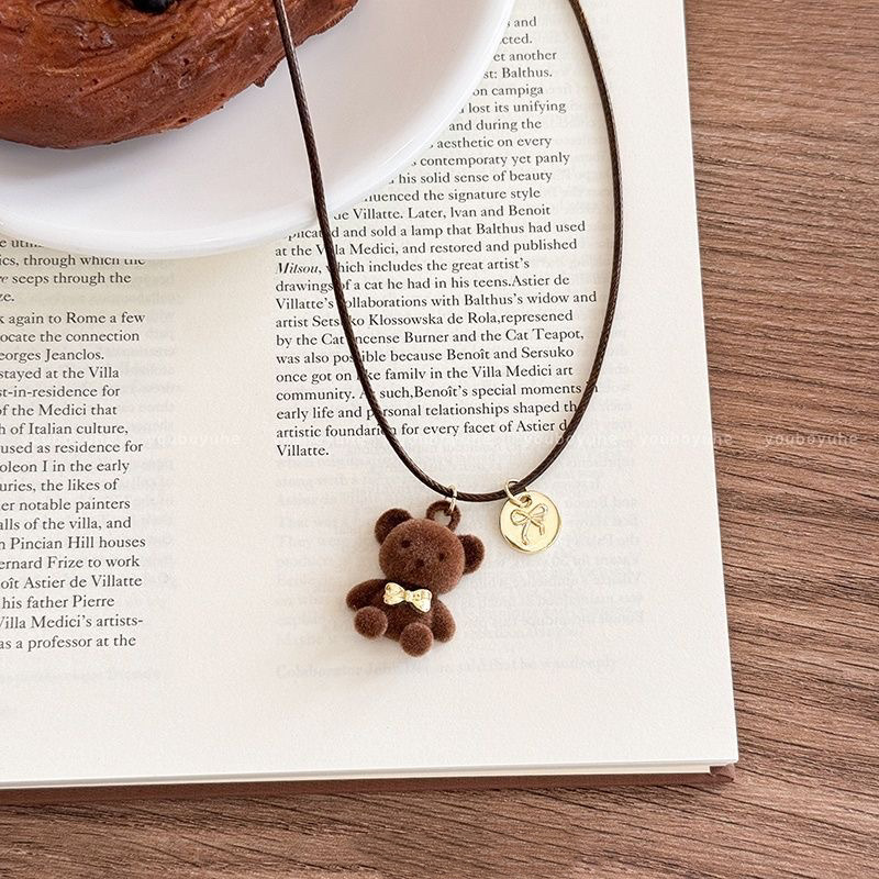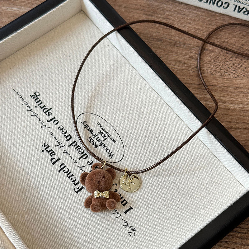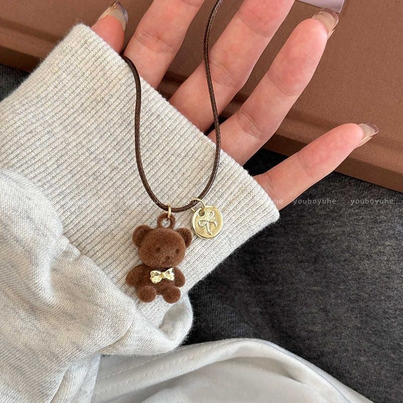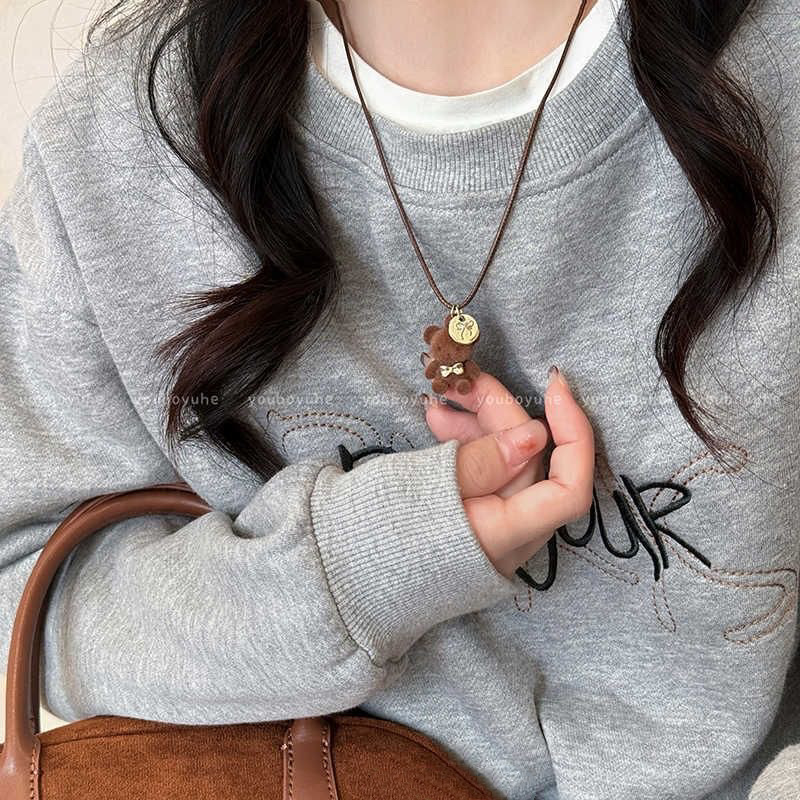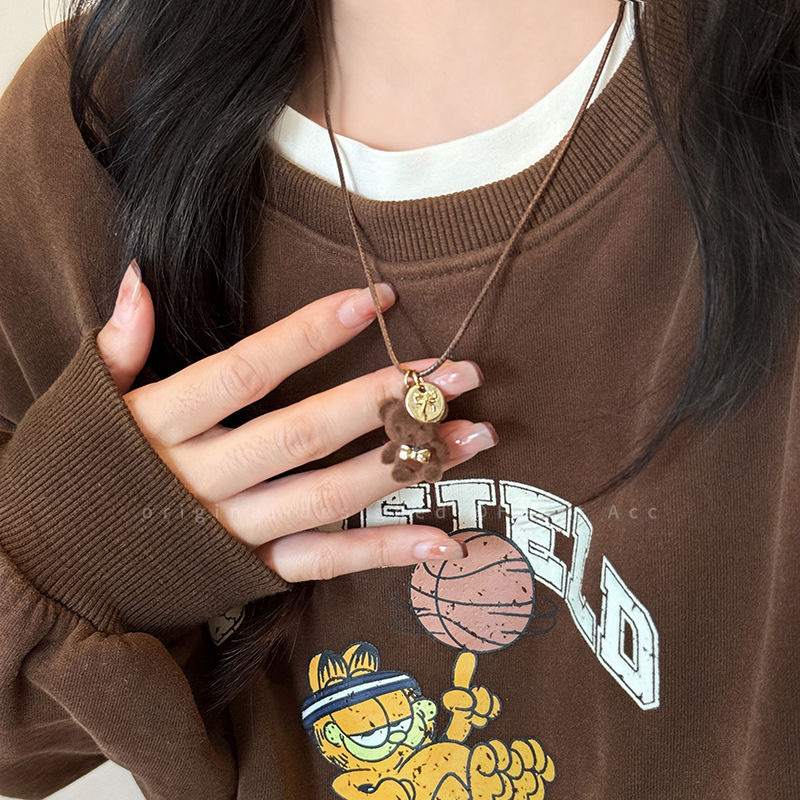 Cute brown Plush Bear Pendant Necklace Women's Autumn and Winter Long Sweater Accessories 2024 New All-match Sweater Chain